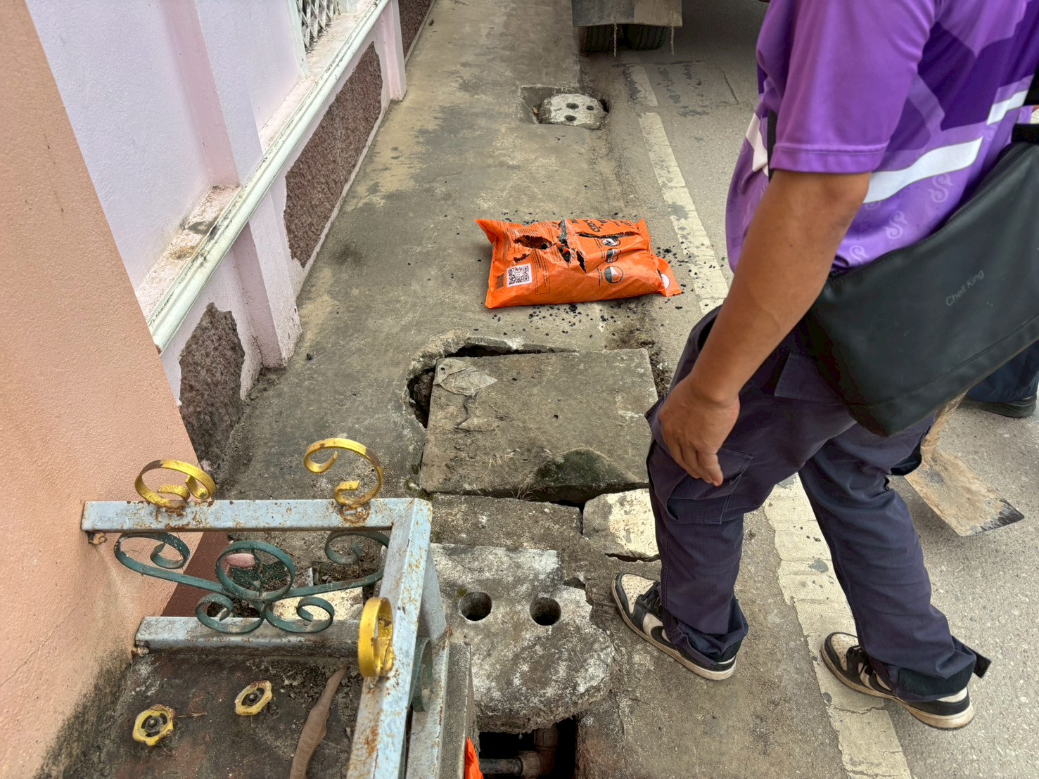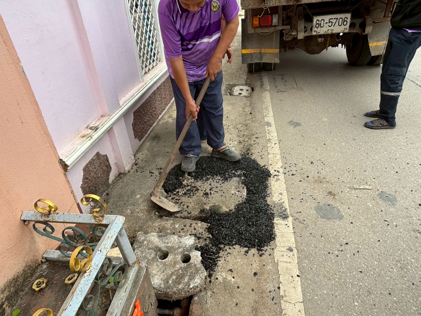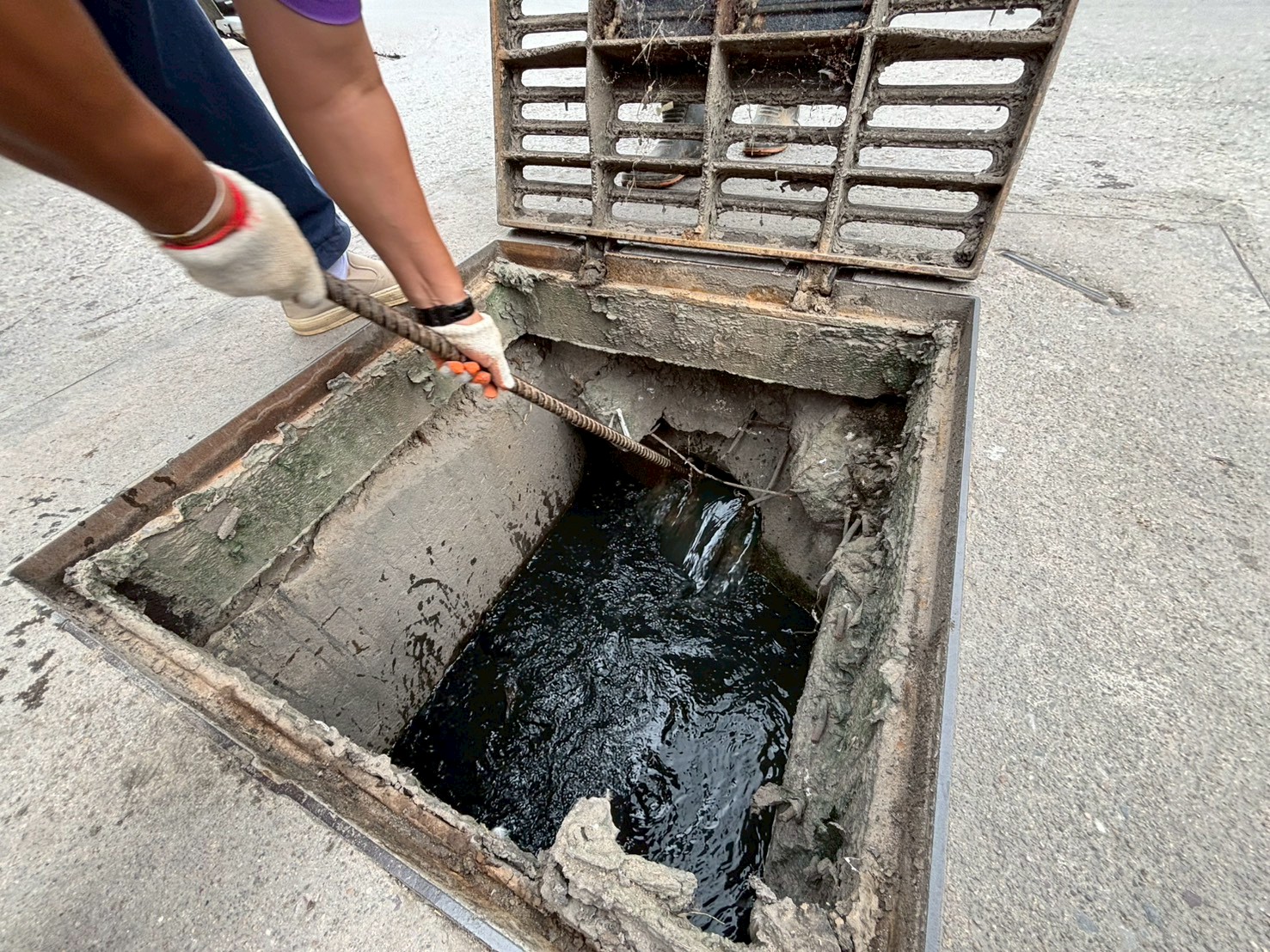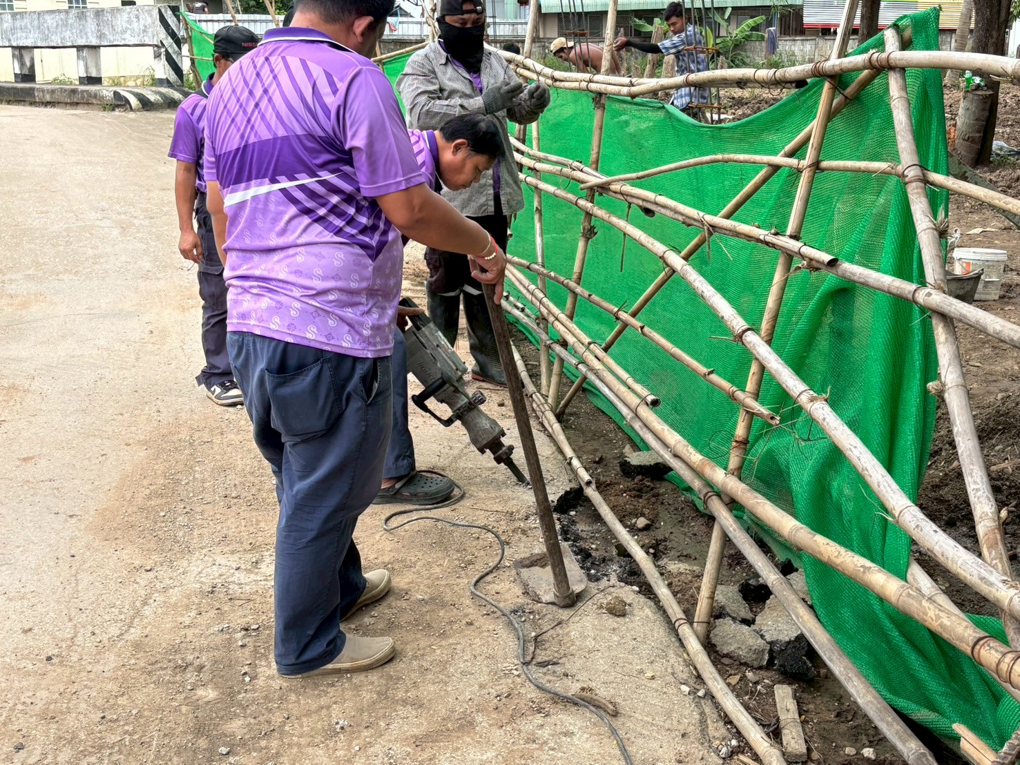 2. ได้เข้าดำเนินการเจาะถนนที่เททับฝาท่อระบายน้ำ เพื่อวัดขนาดและดำเนินการหล่อฝาท่อใหม่ทำเป็นฝาตะแกรงเหล็ก บริเวณสะพานชุมชนสองแคว 1