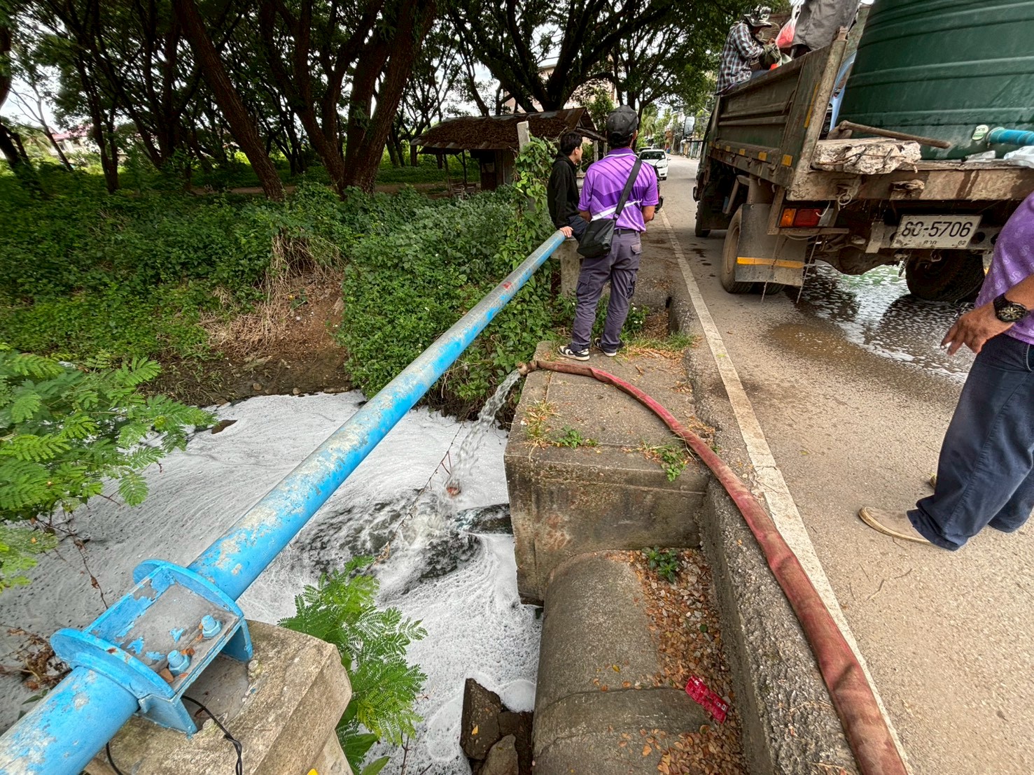 4. ได้เข้าดำเนินการแก้ไขปัญหาท่อระบายน้ำอุดตัน บริเวณหน้าโรงพยาบาลแม่สอด