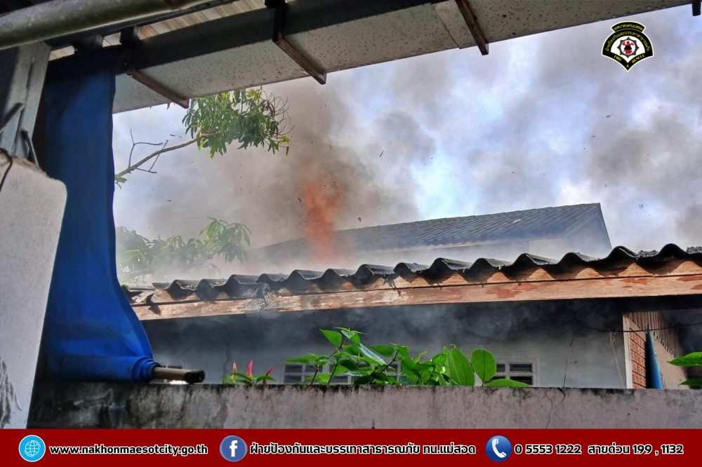 ดับเพลิงนครแม่สอด ออกระงับเหตุเพลิงไหม้บ้านประชาชน บริเวณหมู่บ้านสหกรณ์ ซอย 2