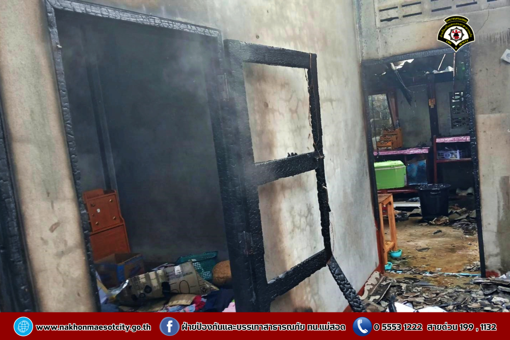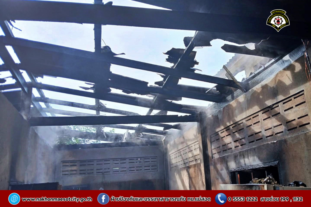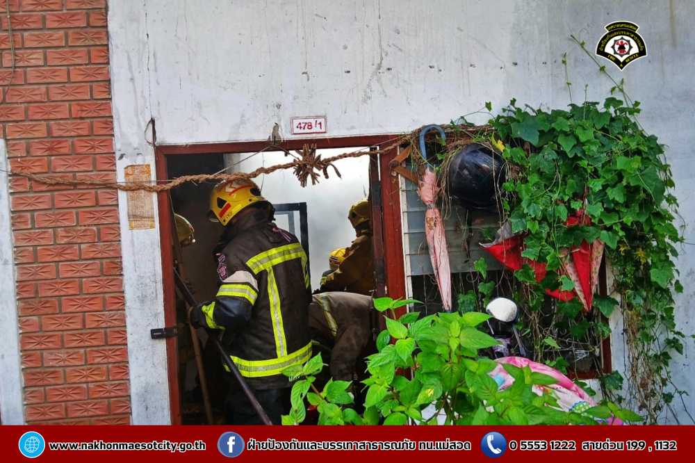 เมื่อถึงที่เกิดเหตุ พบว่าเป็นบ้านปูน 1 ชั้น เลขที่ 478/1 ตำบลท่าสายลวด อำเภอแม่สอด จังหวัดตาก ในช่วงเวลาที่เกิดเพลิงไหม้เวลาประมาณ 08.00 น. ได้เกิดเพลิงไหม้ขึ้น (สาเหตุอยู่ระหว่างตรวจสอบ) นักผจญเพลิงจึงได้ดำเนินการระงับเพลิงที่กำลังลุกไหม้และระบายควัน ใช้เวลาประมาณ 30 นาที จึงสามารถควบคุมเพลิงไหม้ไว้ได้