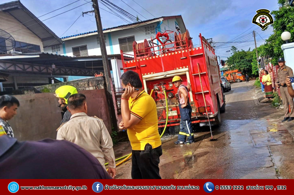 ฝ่ายป้องกันและบรรเทาสาธารณภัย เทศบาลนครแม่สอด จึงได้นำรถยนต์ดับเพลิง จำนวน 1 คัน, รถยนต์บรรทุกน้ำ จำนวน 4 คัน พร้อมนักผจญเพลิง ร่วมกับ ตร. สภ.แม่สอด และการไฟฟ้าส่วนภูมิภาคสาขาแม่สอด ออกตรวจสอบ ณ ที่เกิดเหตุ