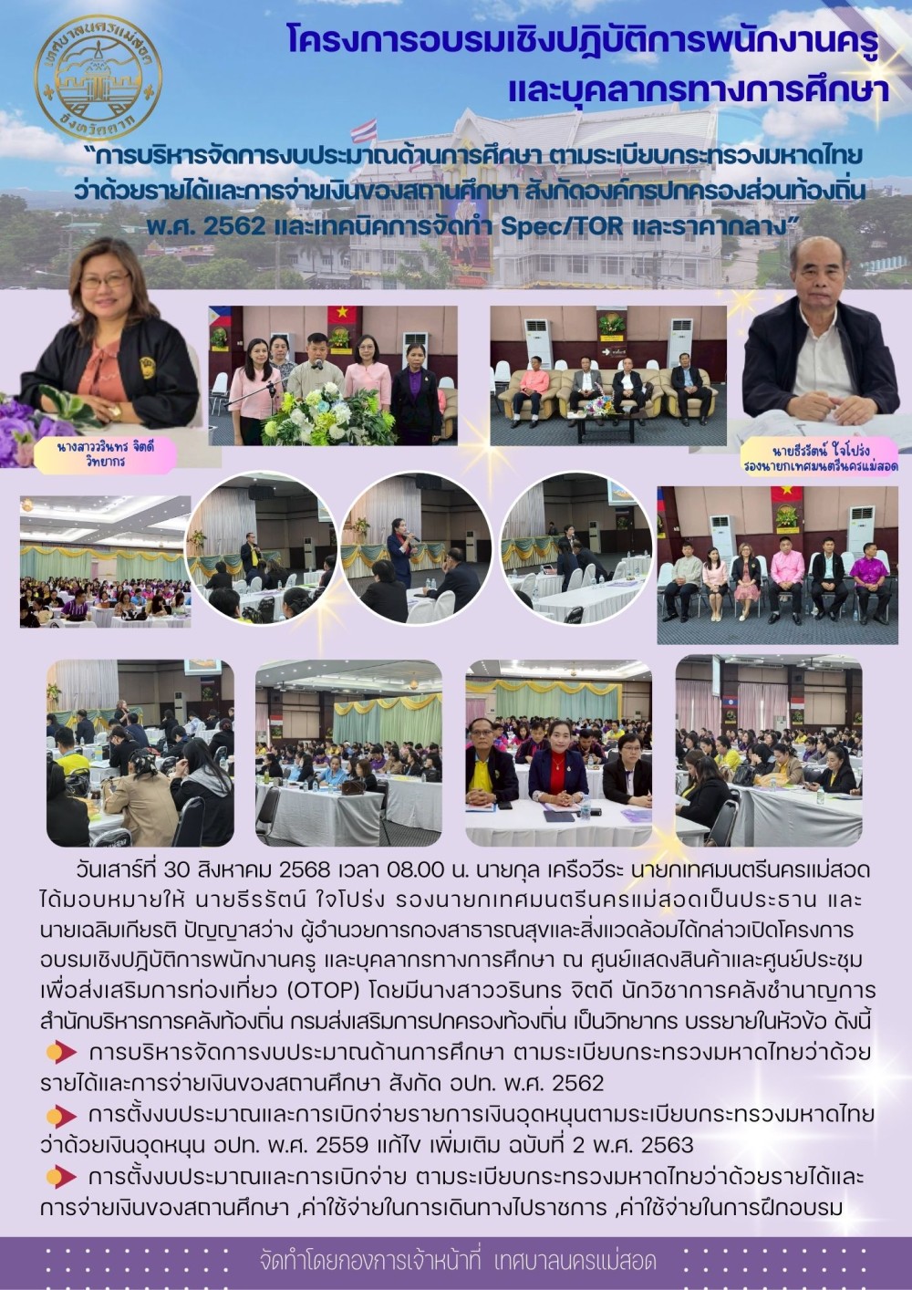 โดย: กองการเจ้าหน้าที่ เทศบาลนครแม่สอด