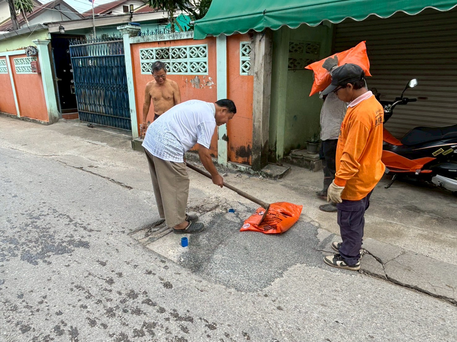 1. ได้เข้าดำเนินการลงยางมะตอยฝาท่อระบายน้ำ บริเวณถนนบัวคูณ จำนวน 1 จุด