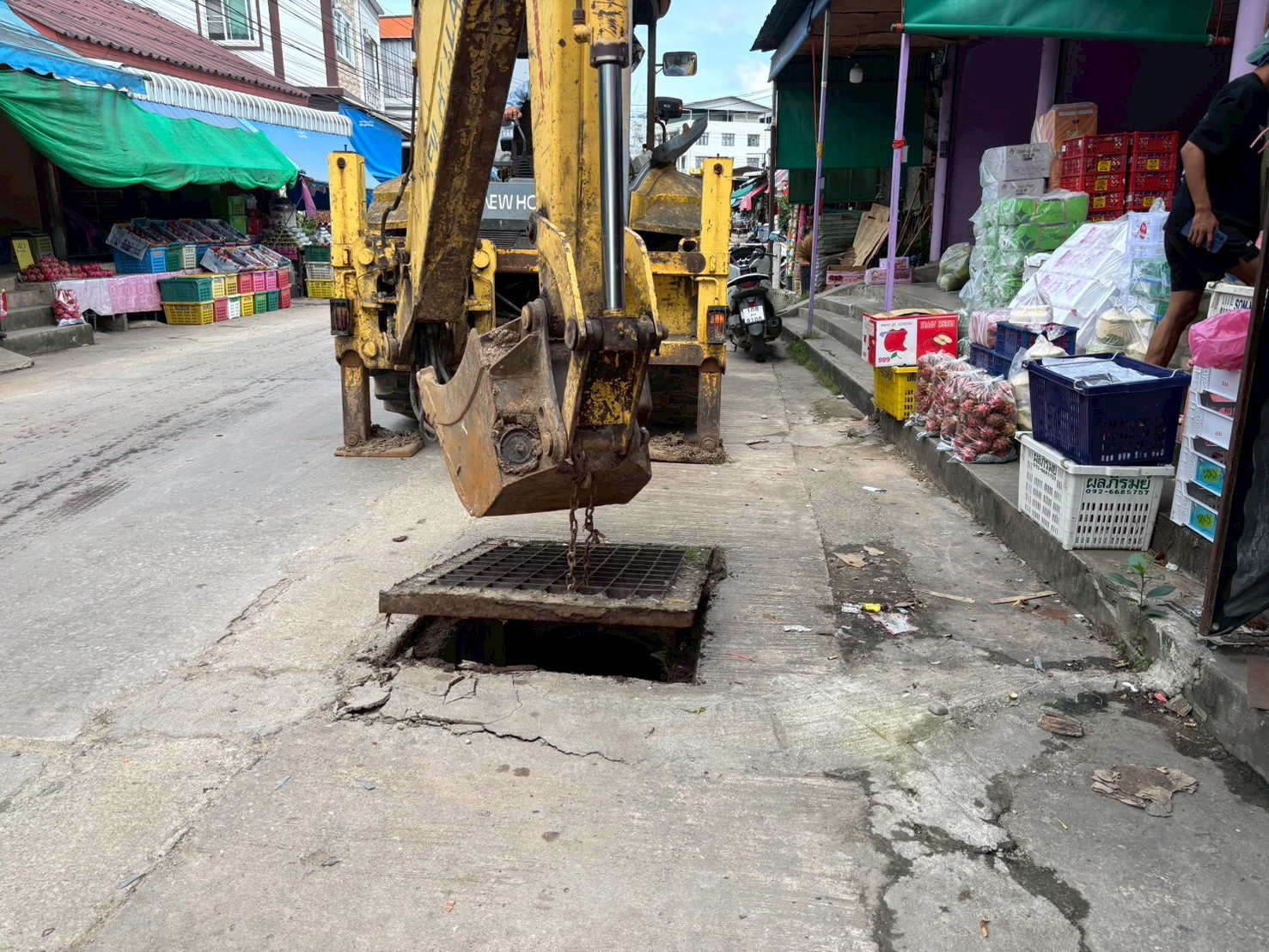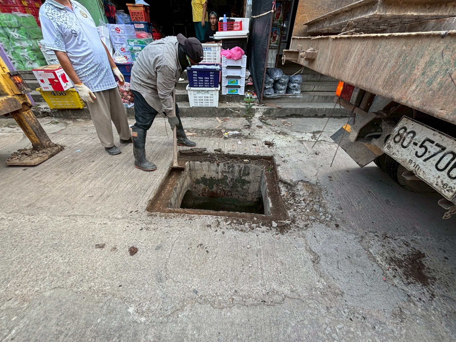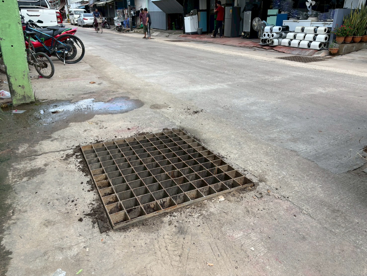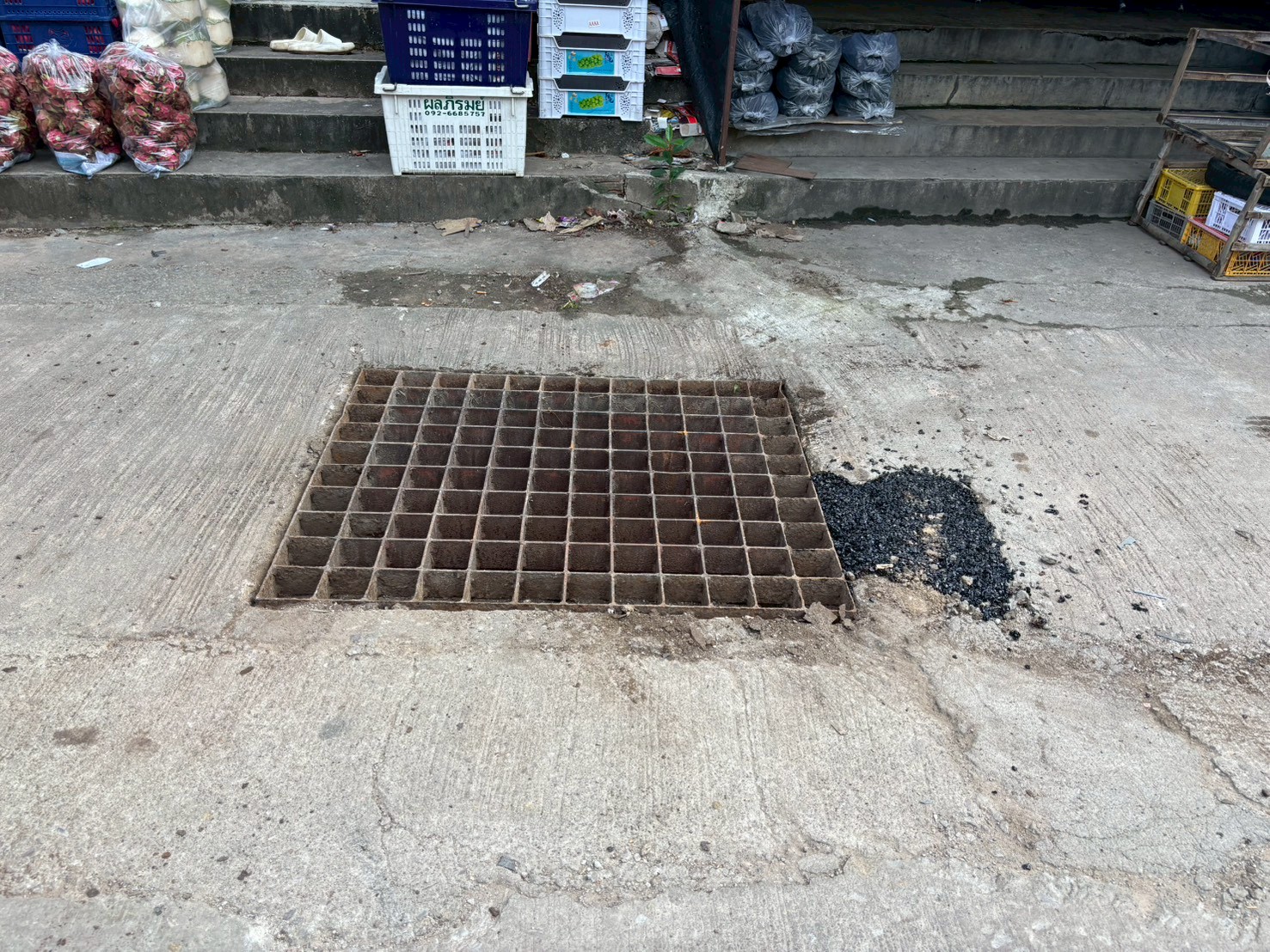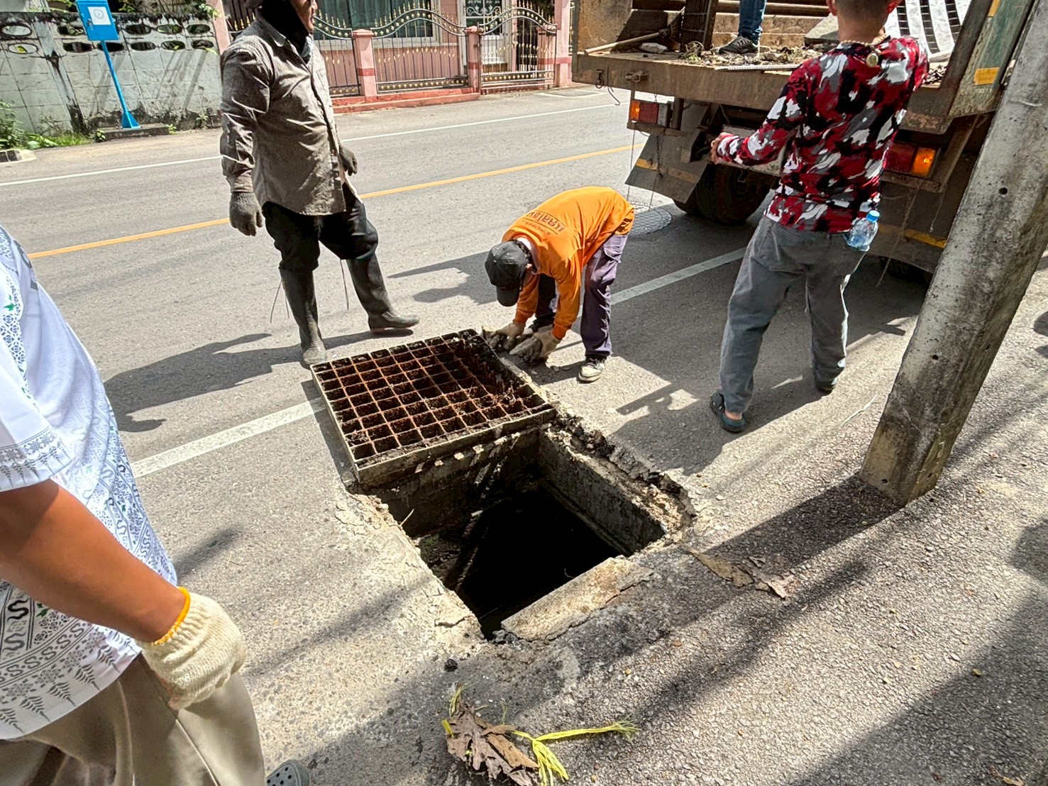 3. ได้เข้าดำเนินการเปลี่ยนฝาท่อระบายน้ำ บริเวณถนนหลังโลตัสเก่า จำนวน 1 ฝา