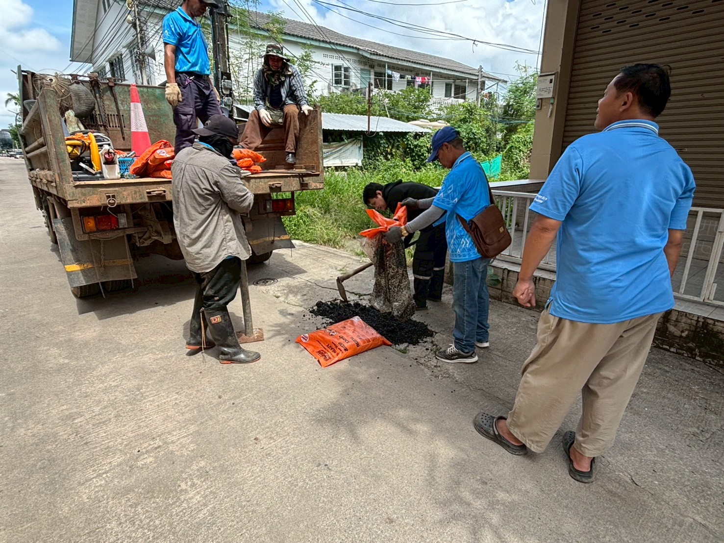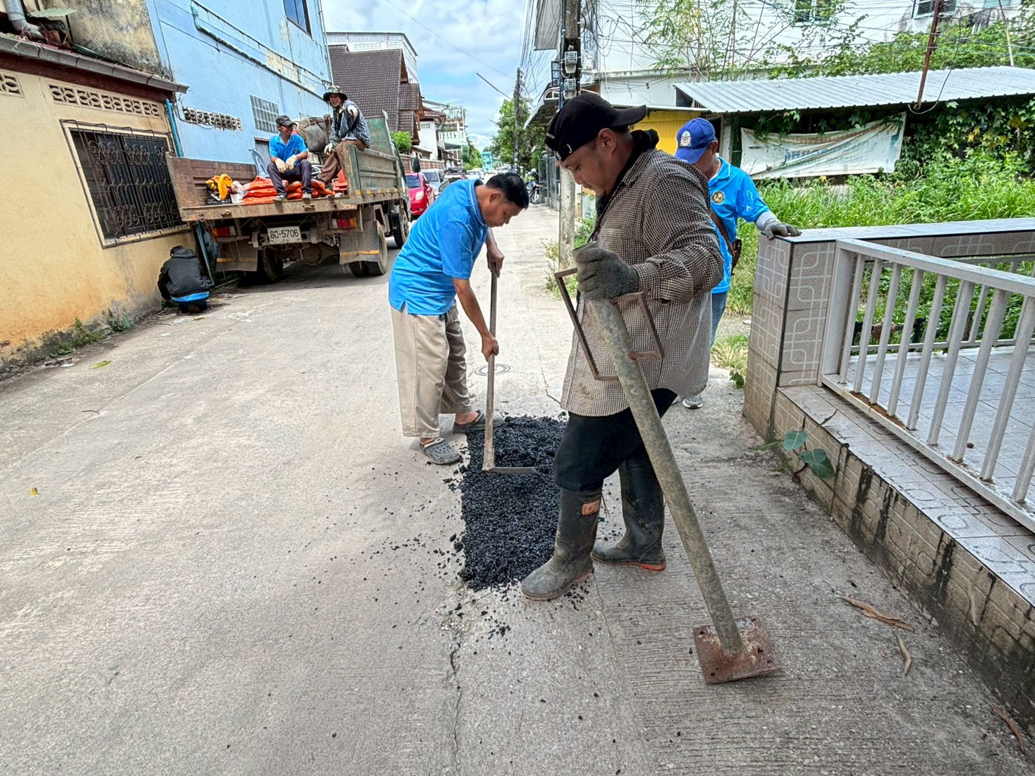 2. ได้เข้าดำเนินการลงยางมะตอยถนนชำรุด บริเวณซอยหลังโลตัสเก่า จำนวน 1 จุด