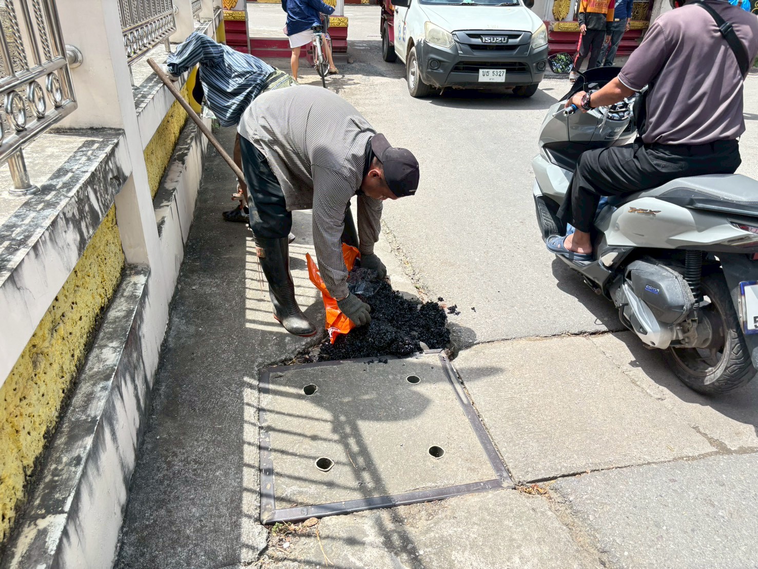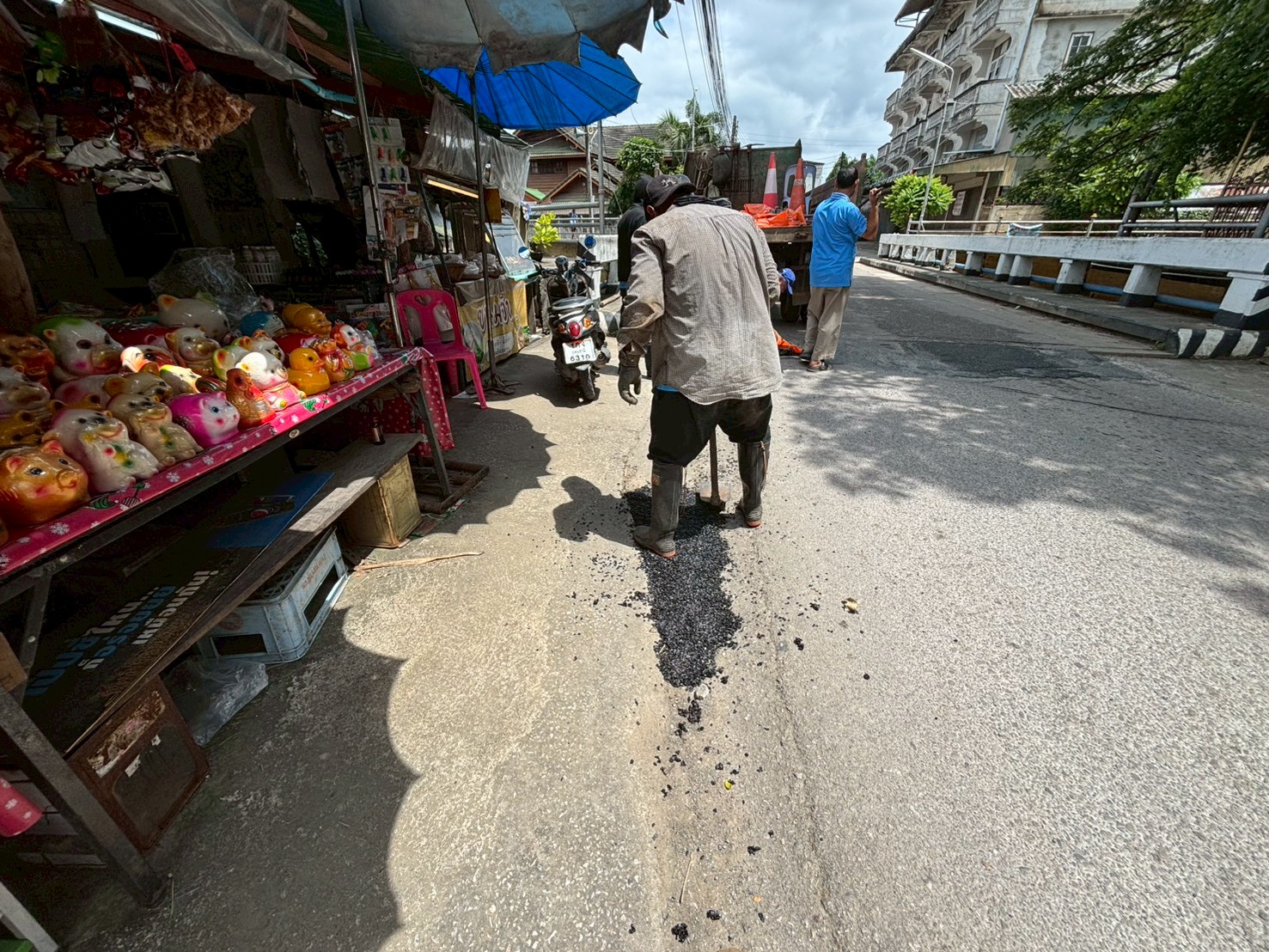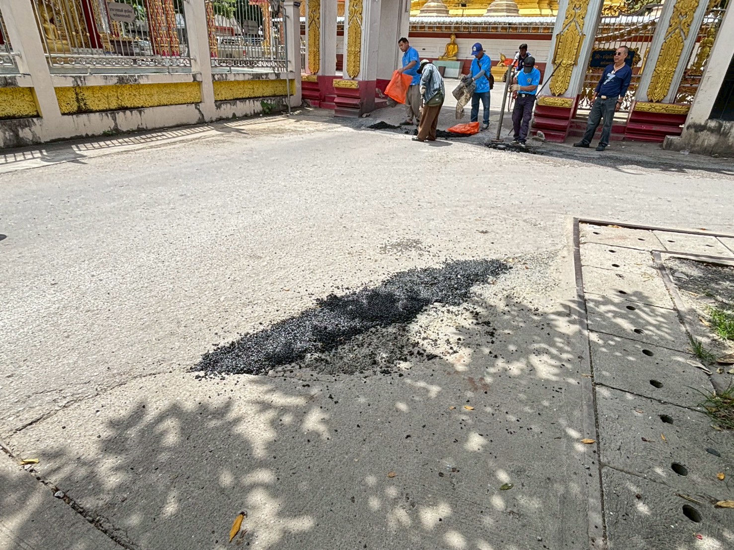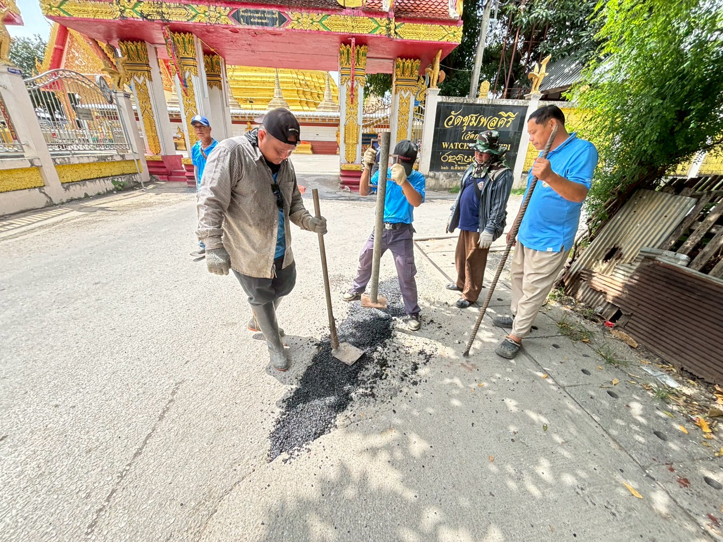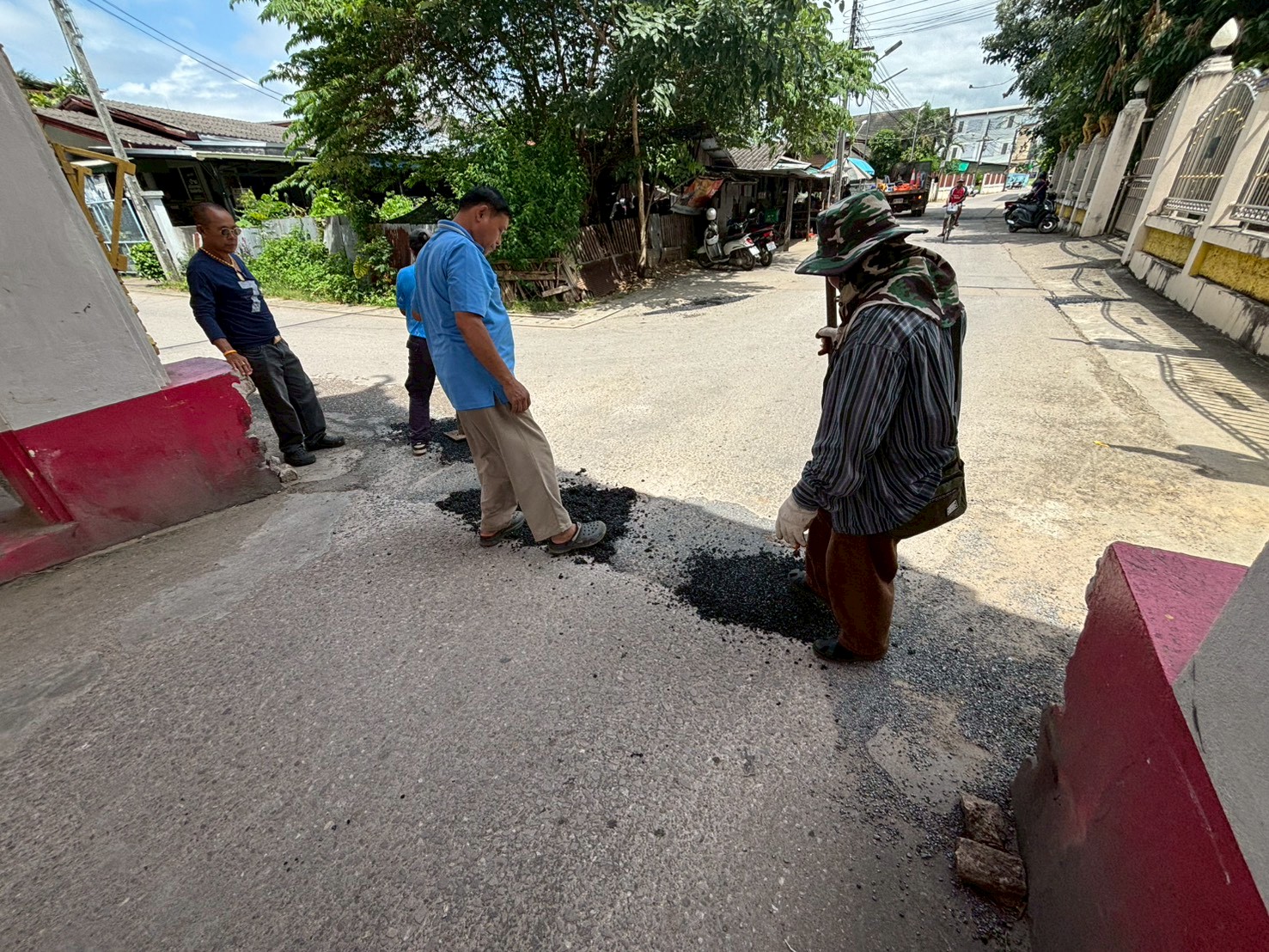 3. ได้เข้าดำเนินการลงยางมะตอยถนนชำรุด บริเวณหลังวัดชุมพลคีรี จำนวน 4 จุด