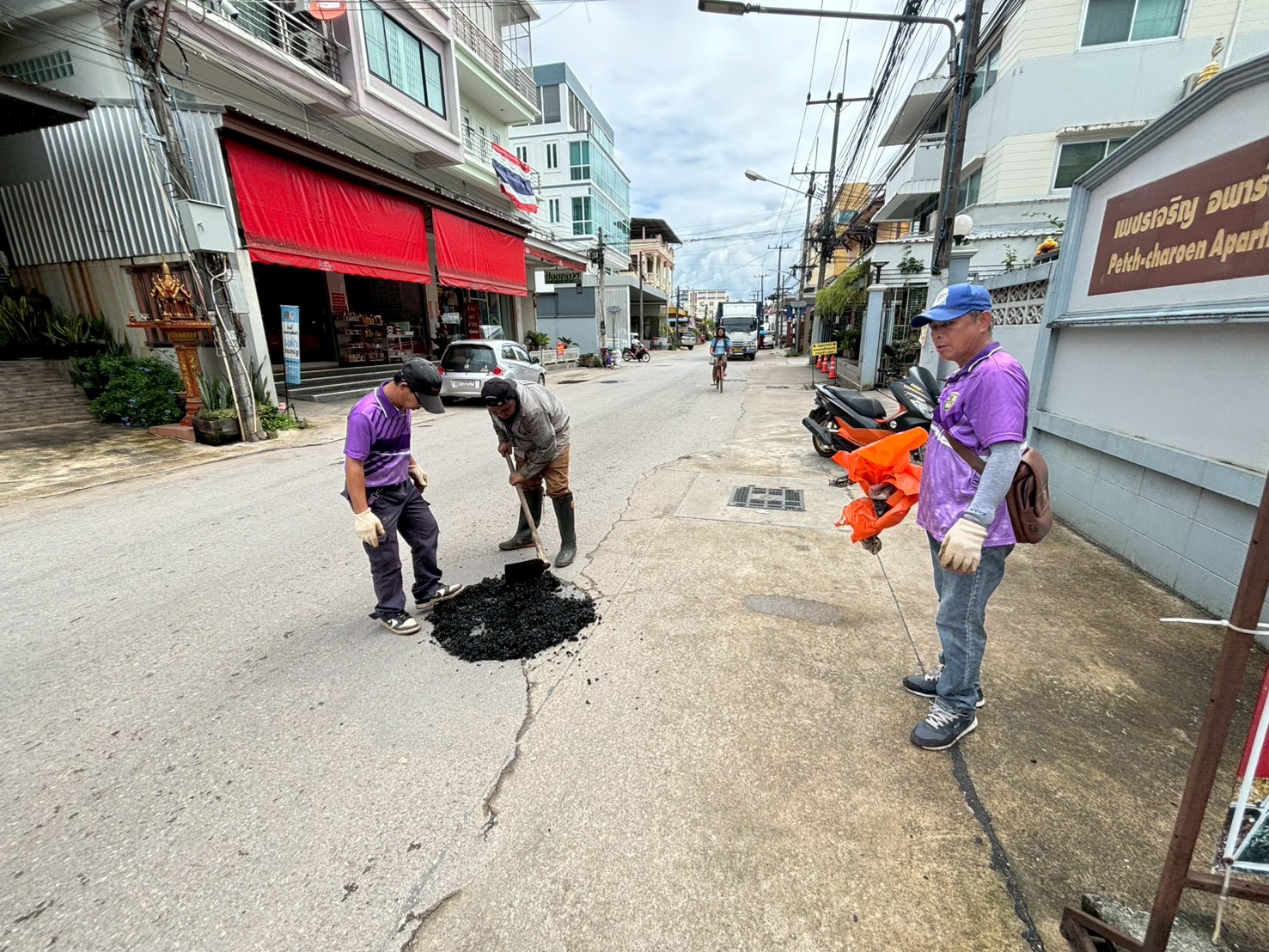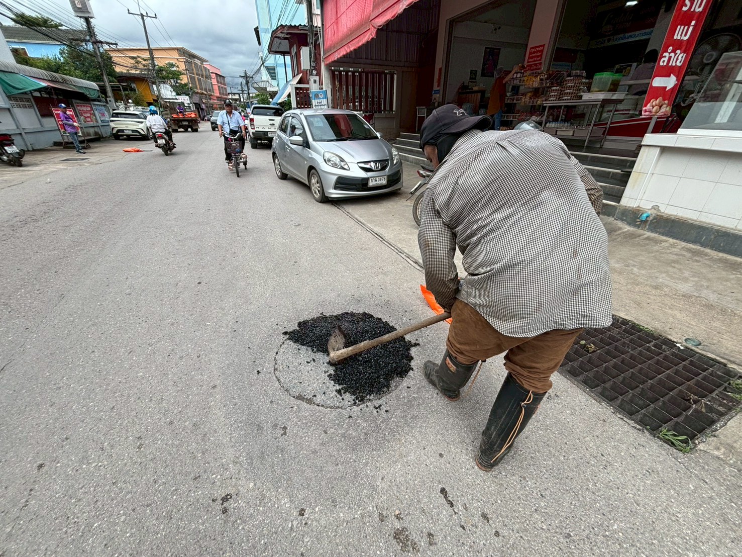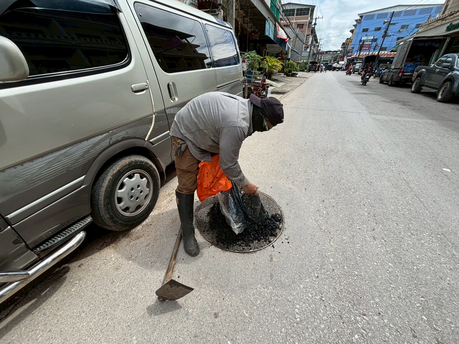 2. ได้เข้าดำเนินการลงยางมะตอยฝาท่อระบายน้ำ ตั้งแต่บริเวณหน้าร้านน้ำดื่มเจอาร์ถึงหน้าเซเว่นโรงพยาบาลแม่สอดราม ถนนราษฎร์อุทิศ