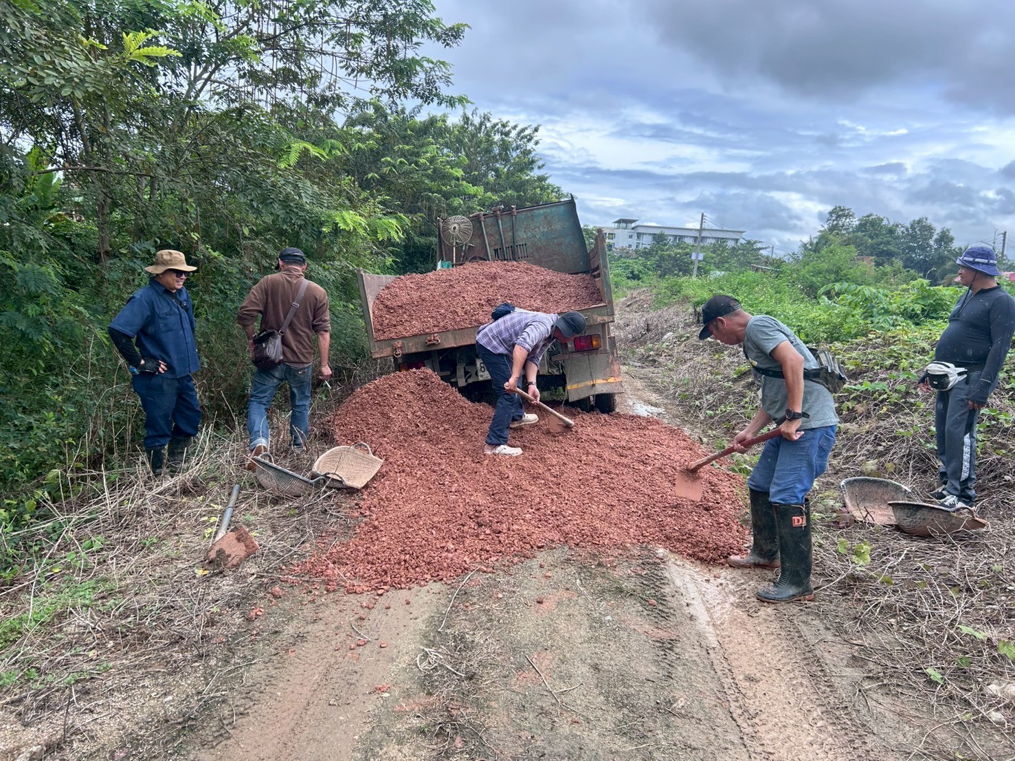 3. ได้เข้าดำเนินการลงหินคลุกร่วมกับเจ้าหน้าที่กองช่าง บริเวณถนนซอยนิพนธ์เต๊นเช่า ชุมชนแม่สอดวิลล่า