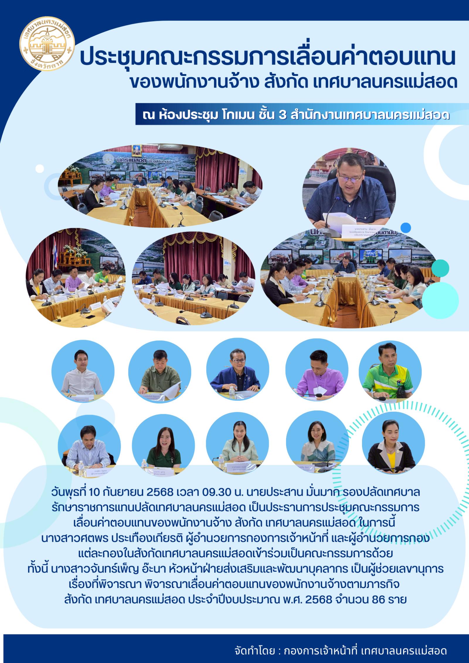 ประชุมคณะกรรมการเลื่อนค่าตอบแทนของพนักงานจ้าง สังกัด เทศบาลนครแม่สอด ประจำปีงบประมาณ พ.ศ. 2568