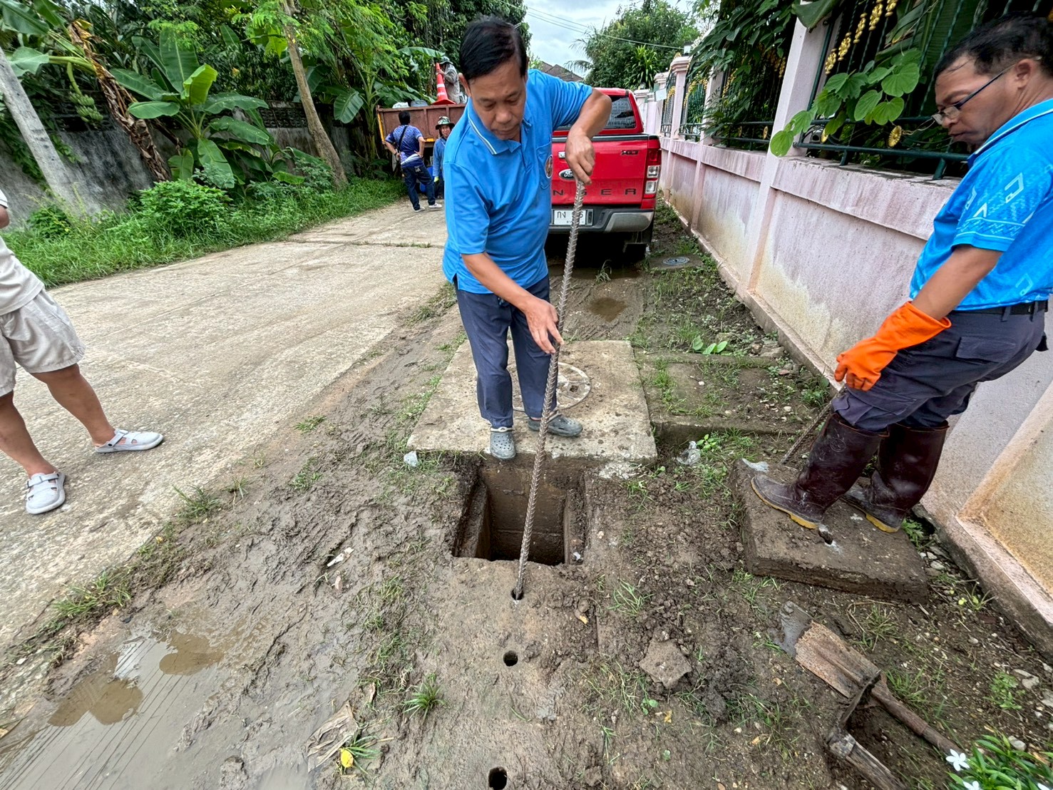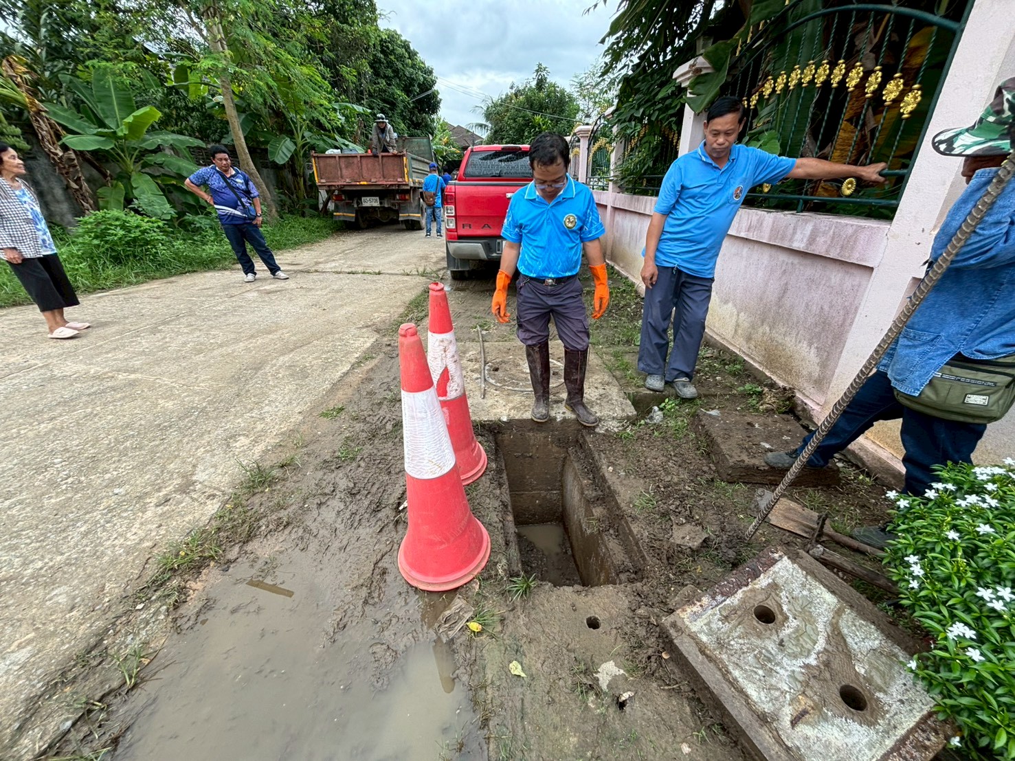 2. ได้เข้าดำเนินการแก้ไขท่อระบายน้ำอุดตัน บริเวณสามแยกร้านขายอุปกรณ์ไฟฟ้า PKP ชุมชนสองแคว 1