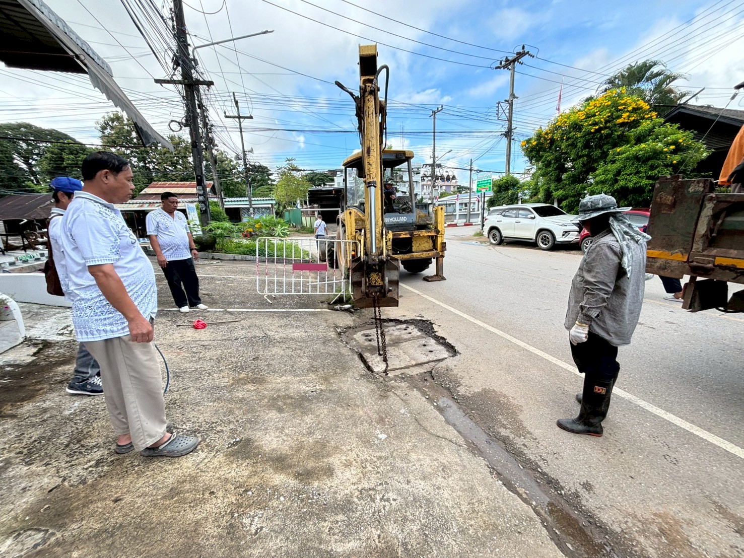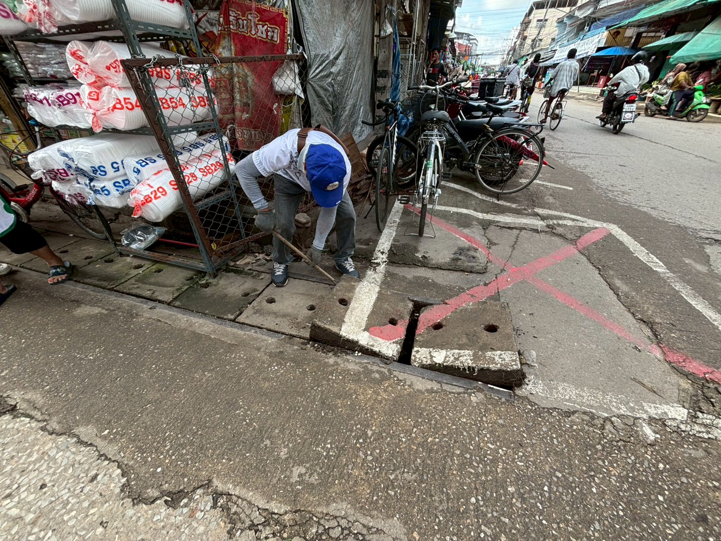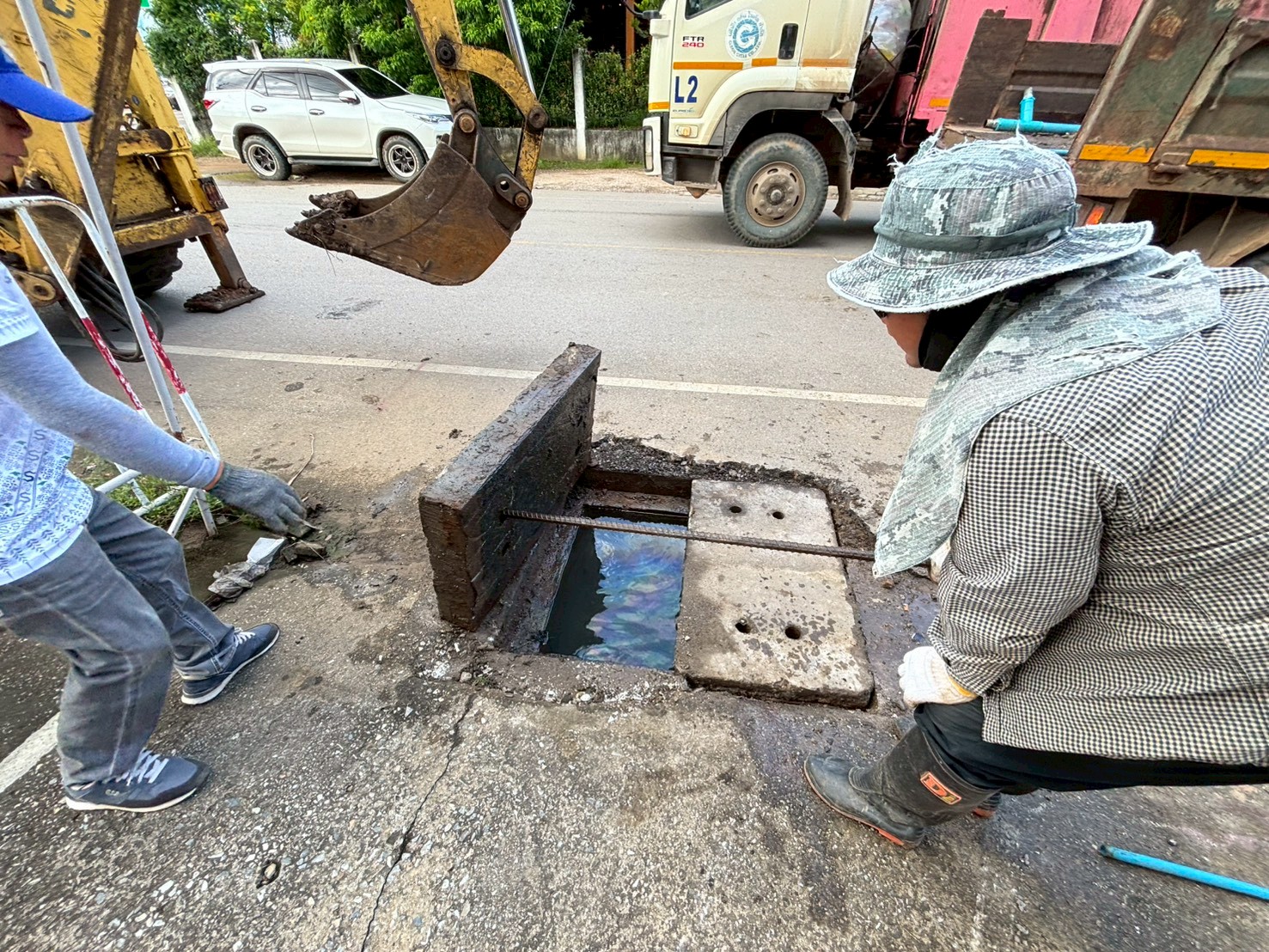 2. ได้เข้าดำเนินการแก้ไขท่อระบายน้ำอุดตัน (เบื้องต้นไม่สามารถแก้ไขได้ แนวทางแก้ไขจ้างเหมาเชื่อมท่อระบายน้ำ) บริเวณสามแยกการไฟฟ้าแม่สอด