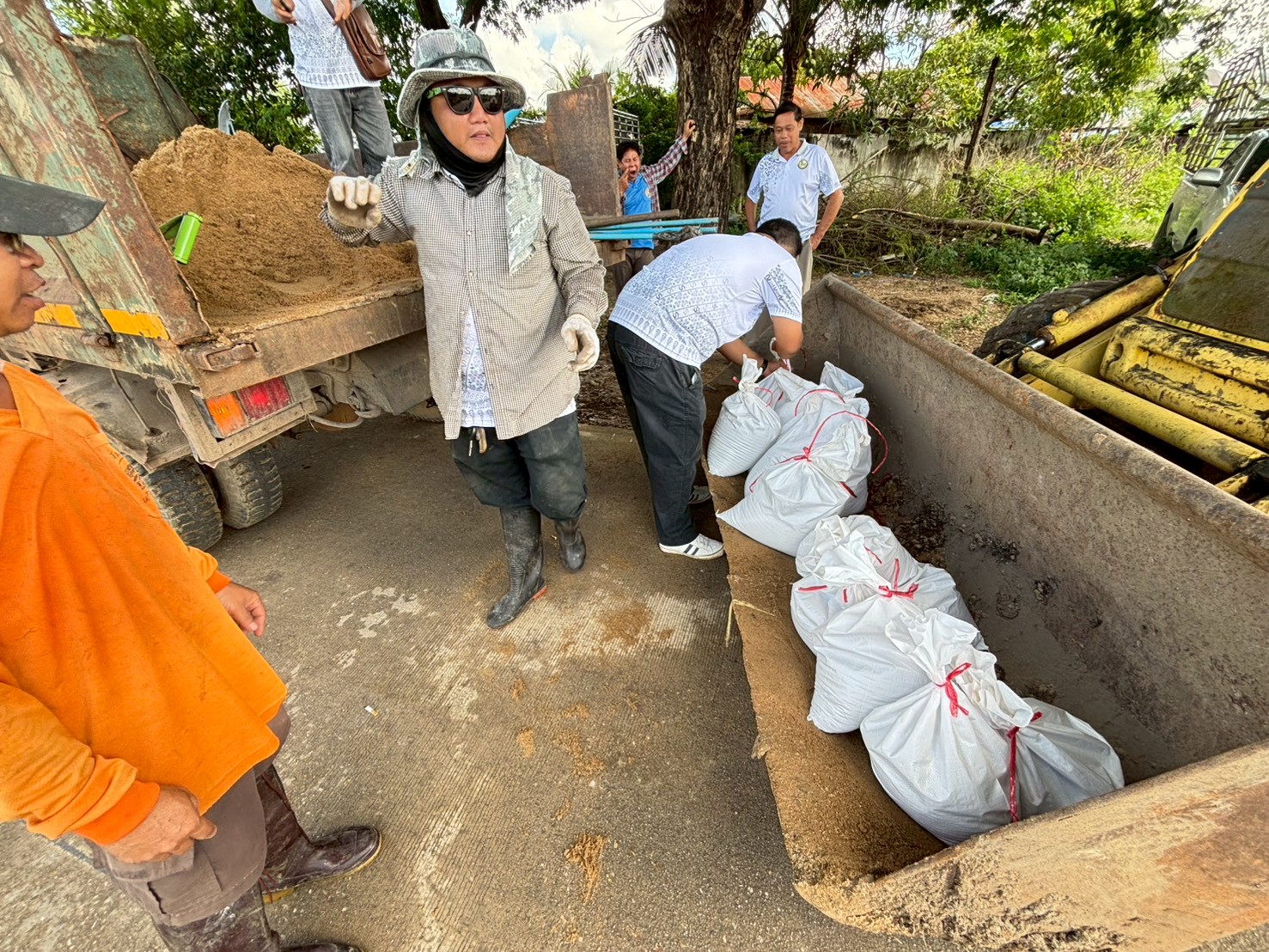 3. ได้เข้าดำเนินการเอากระสอบทรายปิดกั้นท่อระบายน้ำ เพื่อชะลอการไหลของน้ำเข้าไปเติมในแนวท่อระบายน้ำหน้าไทยแสงทองบ้านโต้ง เพื่อแก้ปัญหาน้ำท่วมขัง บริเวณคลองเลียบชลประทาน ซอยกลางใกล้กับไทยแสงทองบ้านโต้ง ชุมชนอิสลาม