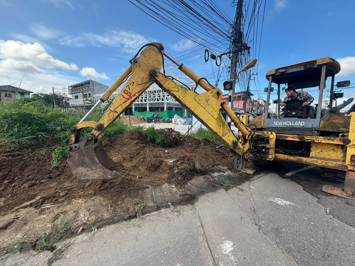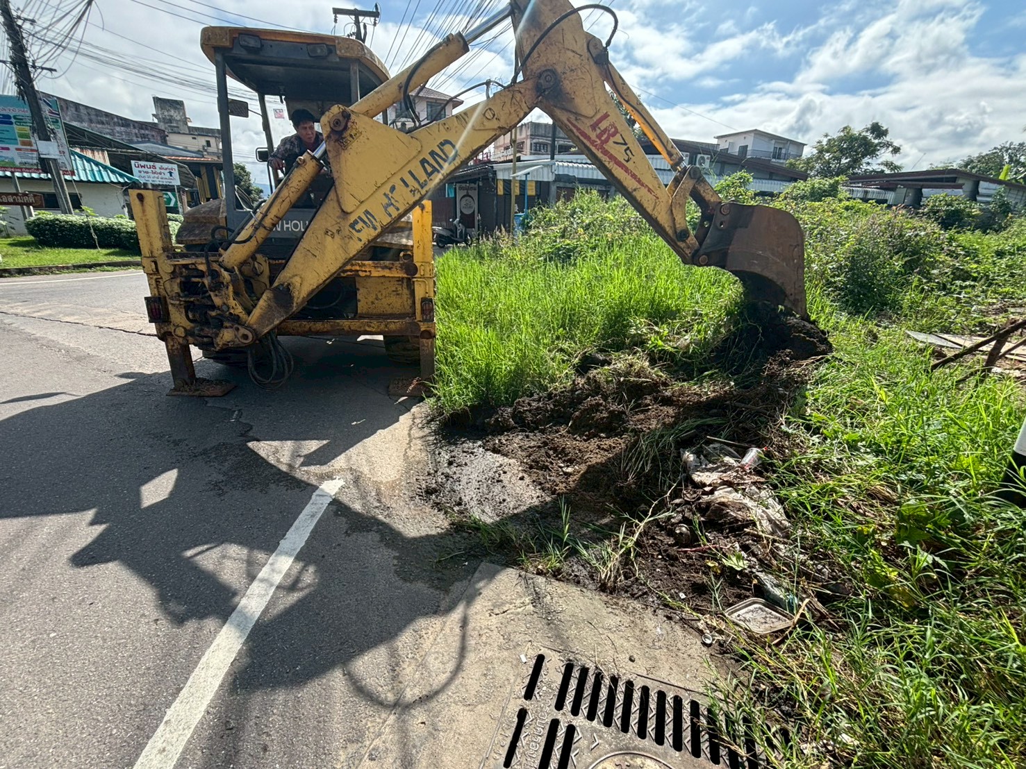 1. ได้เข้าดำเนินการขุดร่องระบายน้ำ บริเวณหน้าทางเข้าหมู่บ้านแม่สอดวิลล่า