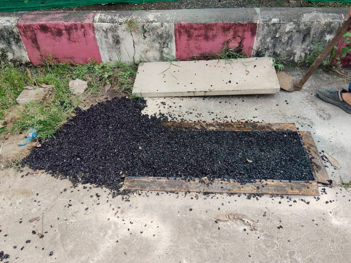 2. ได้เข้าดำเนินการลงยางมะตอยปิดท่อรางระบายน้ำเก่า บริเวณวงเวียนหน้าโรงเรียนสรรพวิทยาคม จำนวน 1 ฝา