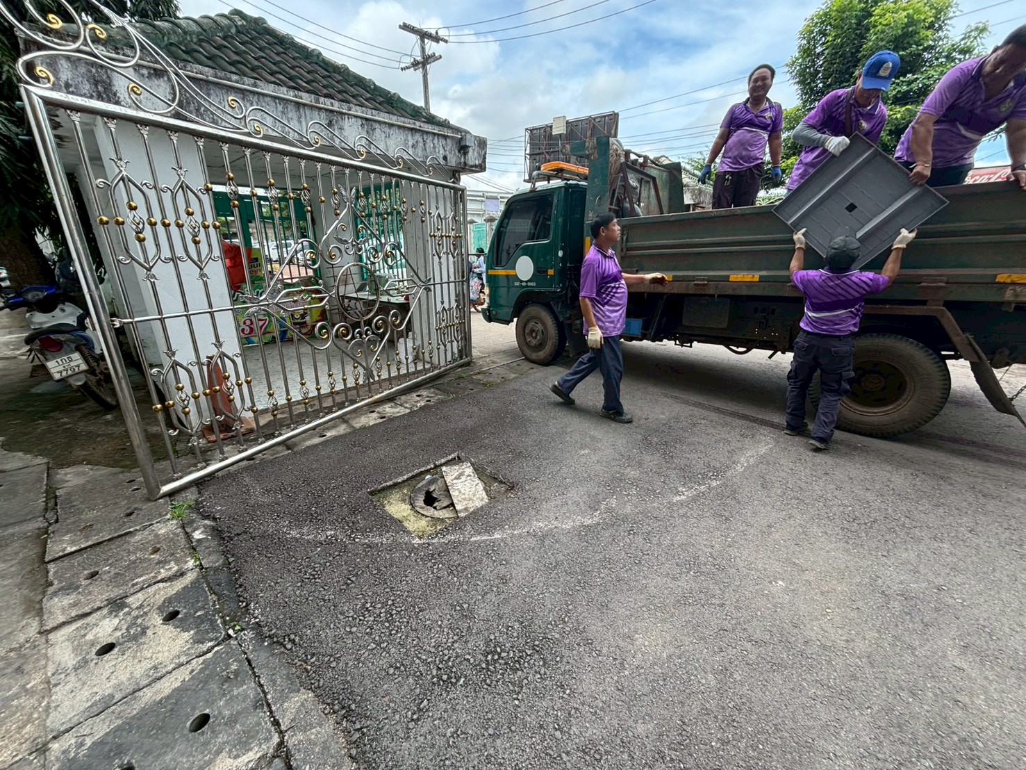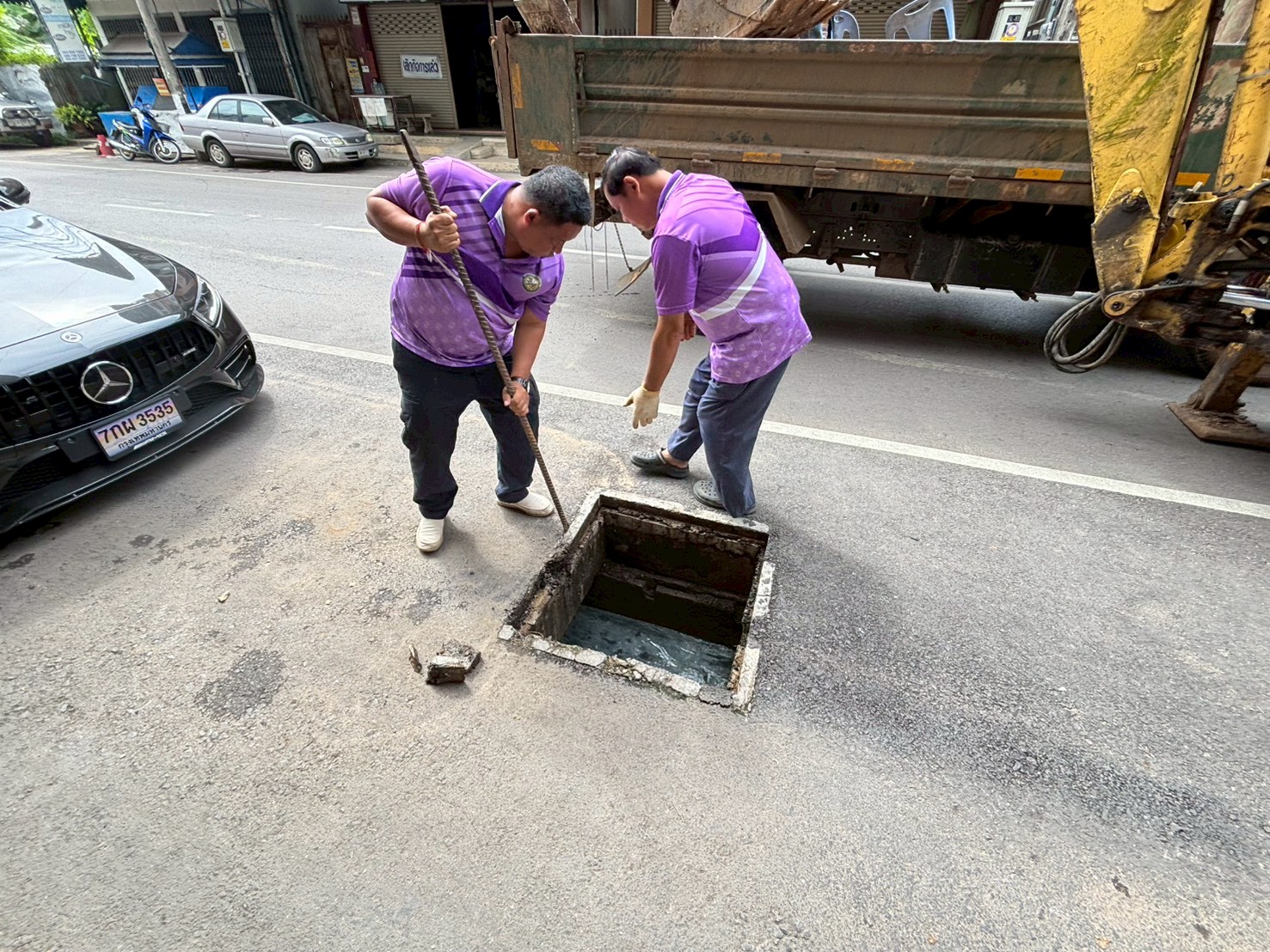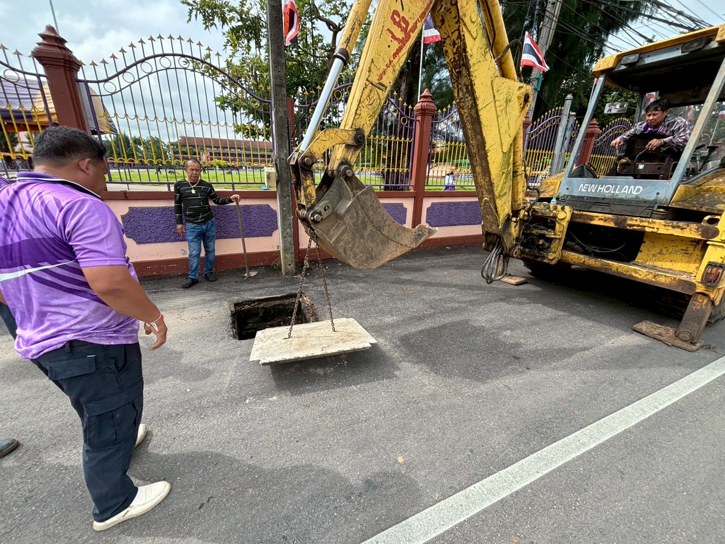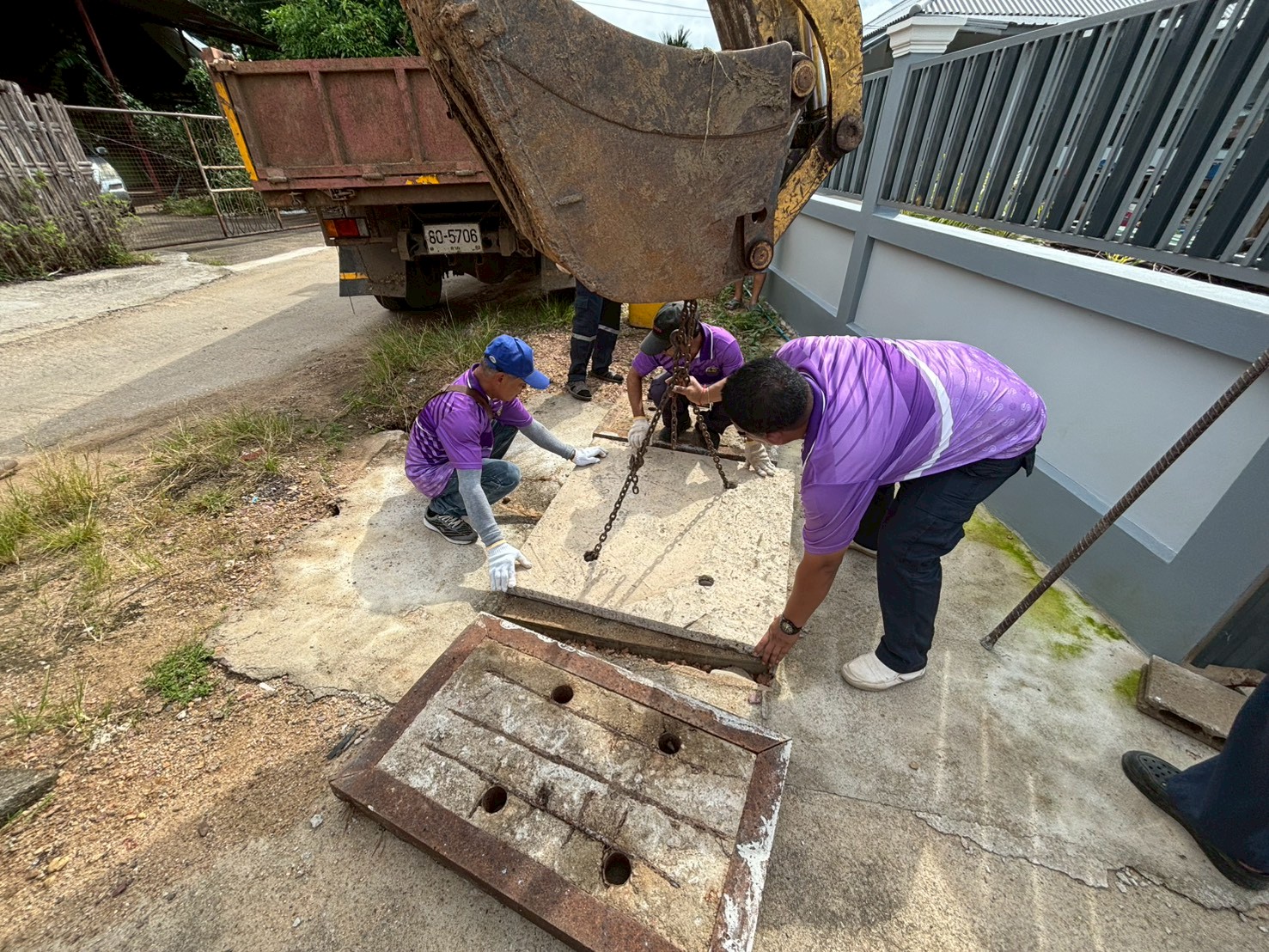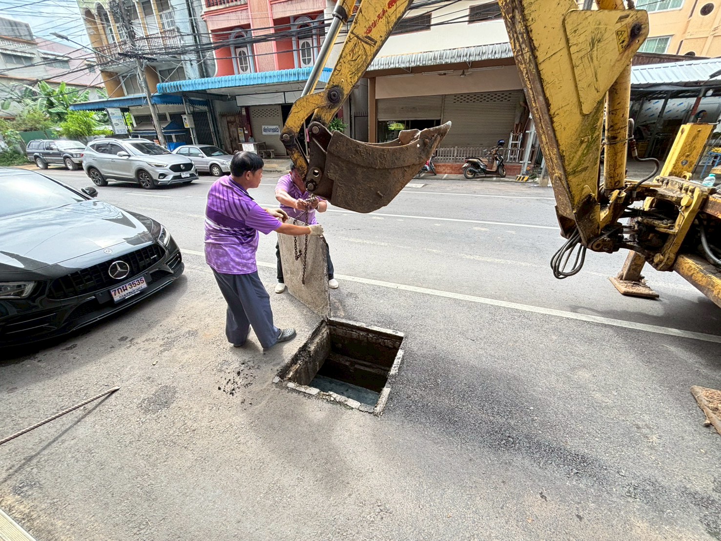 4. ได้เข้าดำเนินการเปลี่ยนฝาท่อระบายน้ำ บริเวณหน้าธนาคารไทยเครดิต ถนนประสาทวิถี จำนวน 1 ฝา