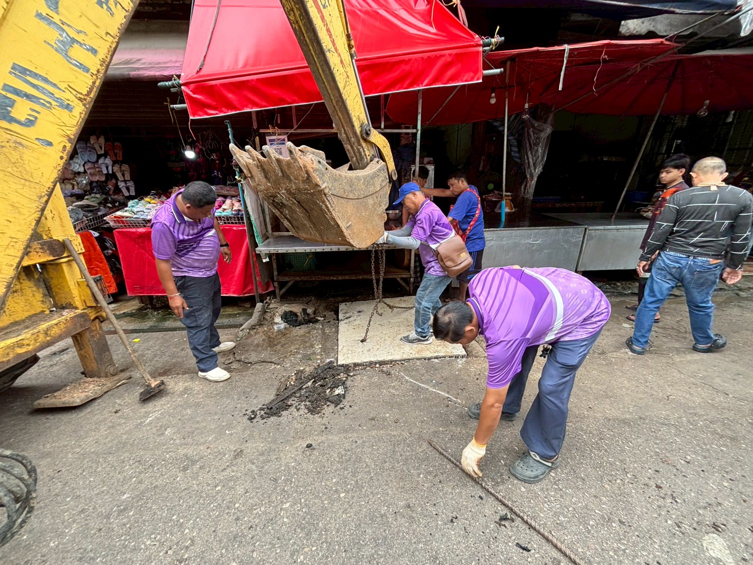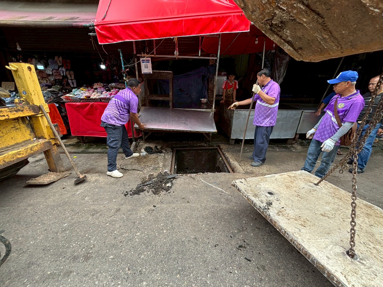2. ได้เข้าดำเนินการเปลี่ยนฝาท่อระบายน้ำ บริเวณหน้าร้านขายหมู ตลาดพาเจริญ จำนวน 1 ฝา