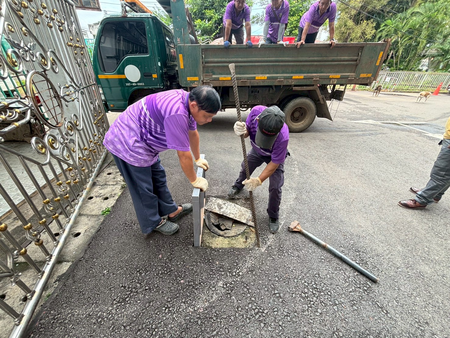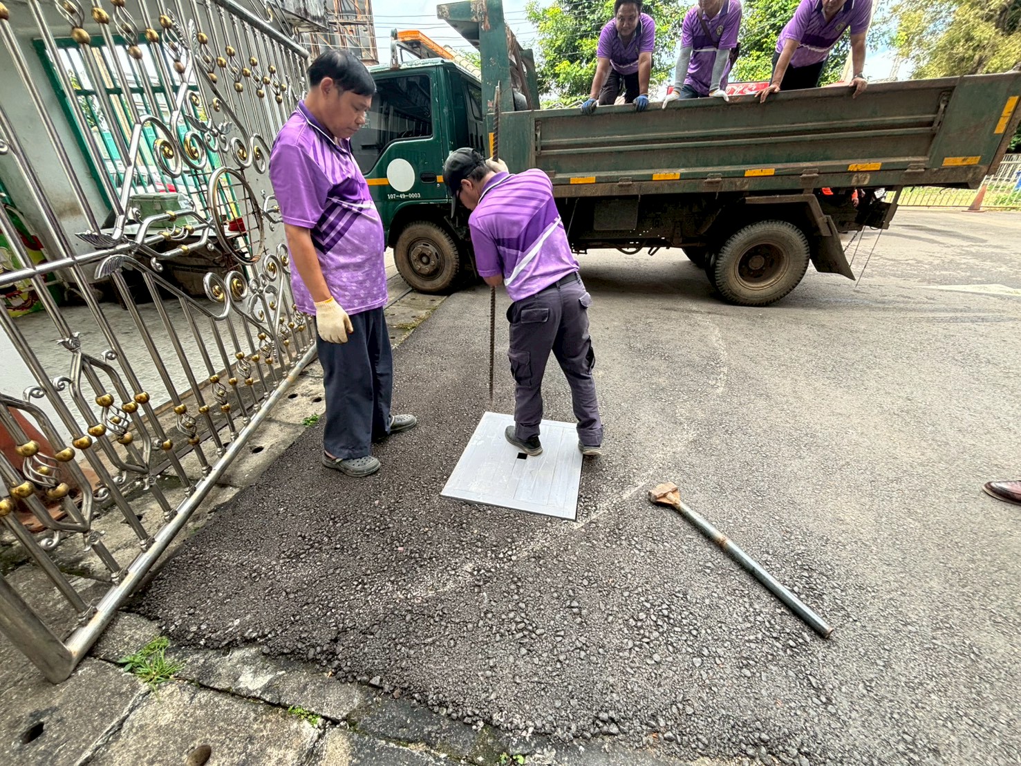 3. ได้เข้าดำเนินการเปลี่ยนฝาท่อระบายน้ำ บริเวณหน้าโรงเรียนสรรพวิทยาคม ถนนประสาทวิถี จำนวน 1 ฝา
