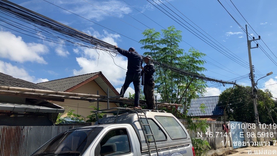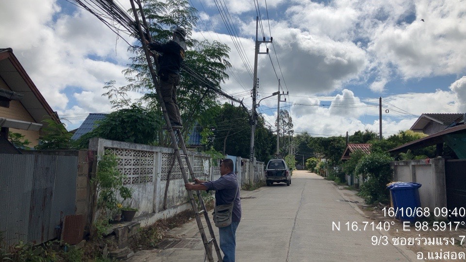 ว่าที่พันตรี ดร.ไพฑูรย์ ปริญญาธรรมกุล ผู้อำนวยการกองยุทธศาสตร์และงบประมาณ มอบหมายให้เจ้าหน้าที่ช่างเคเบิ้ลทีวีเพื่อการศึกษา เจ้าหน้าที่ฝ่ายวิเทศสัมพันธ์ กองยุทธศาสตร์และงบประมาณ ลงพื้นที่ดำเนินการตามคำร้องขอซ่อมแซมเคเบิ้ลทีวี ในเขตชุมชนร่วมแรง ซ.7 เพื่อให้ประชาชนชุมชน ดังกล่าว ได้สามารถกลับมารับชมบริการเคเบิ้ลทีวีเพื่อการศึกษาของเทศบาลนครแม่สอดได้