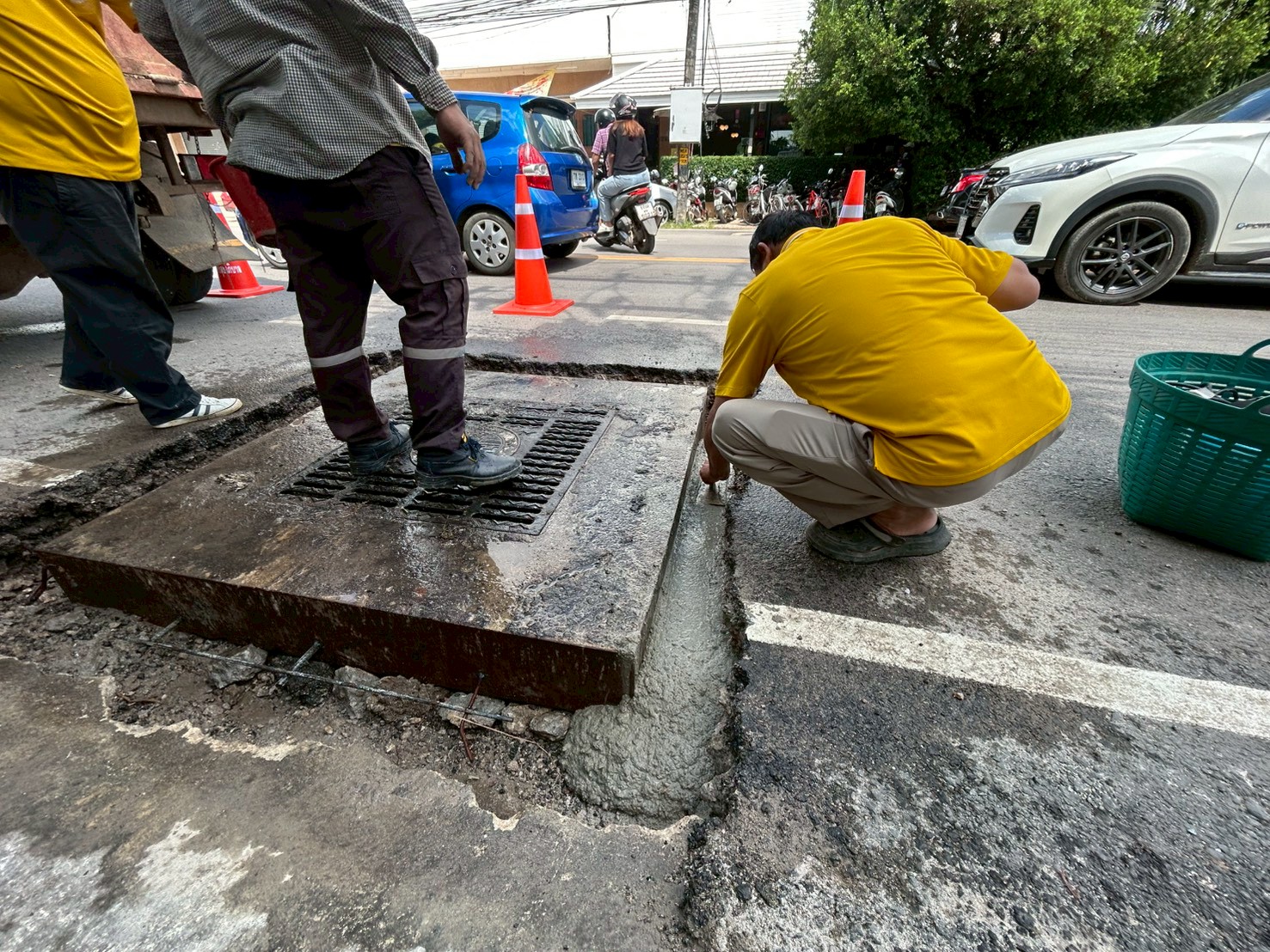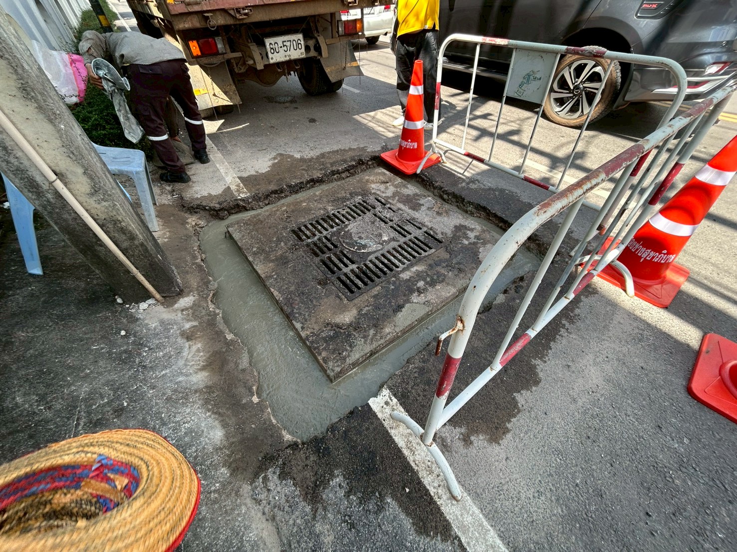 1. ได้เข้าดำเนินการซ่อมแซมฝาท่อระบายน้ำชำรุด บริเวณสี่แยกเจ้าสัว