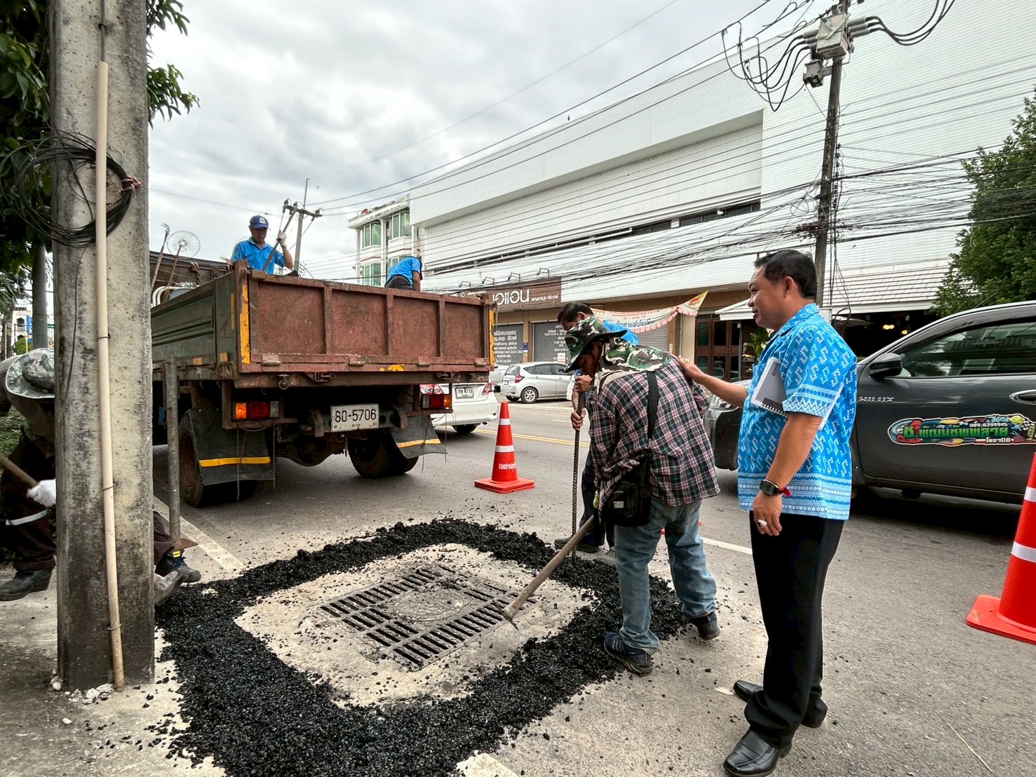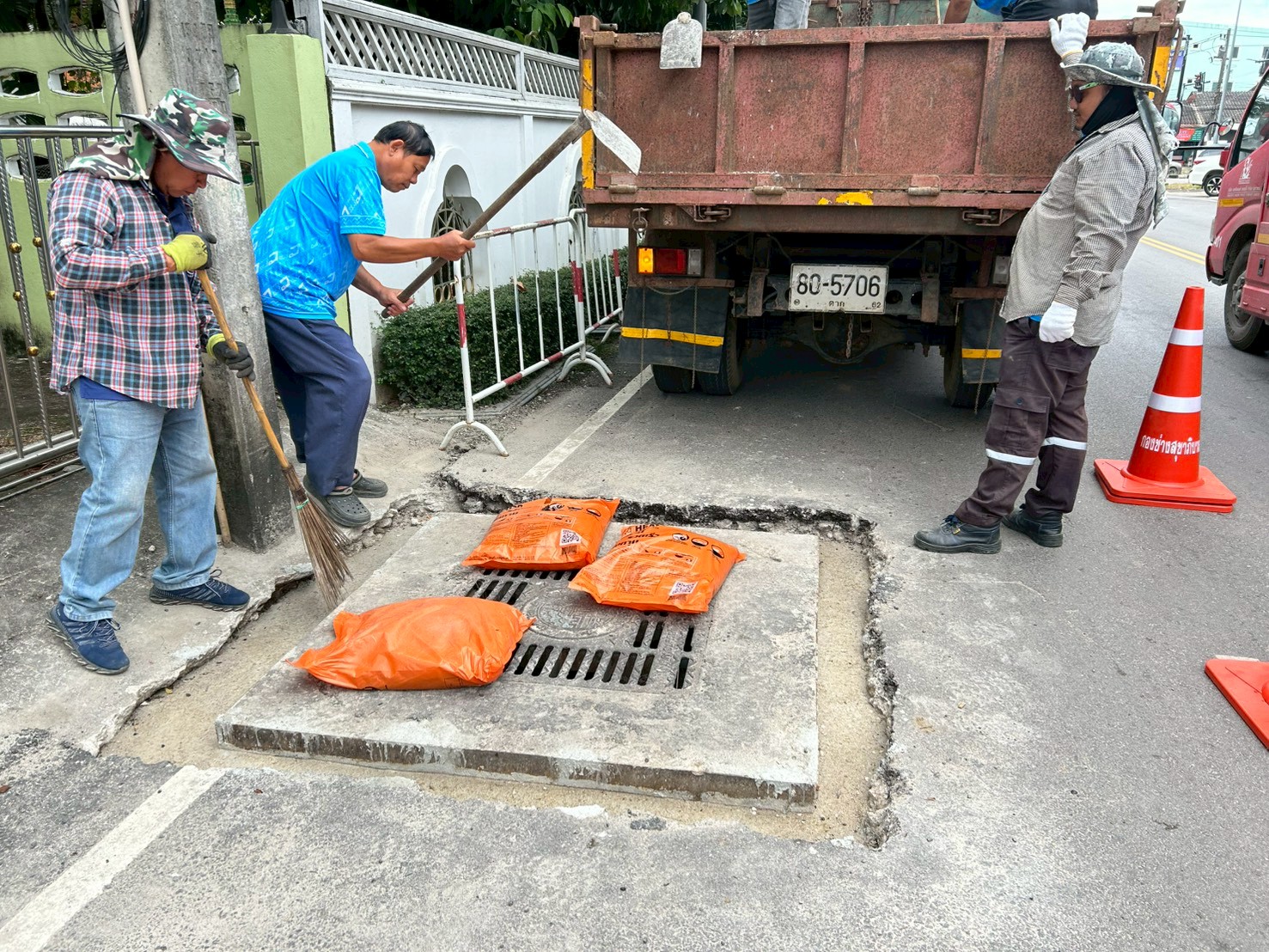 1. ได้เข้าดำเนินการลงยางมะตอยงานซ่อมแซมฝาท่อระบายน้ำ บริเวณสี่แยกเจ้าสัว