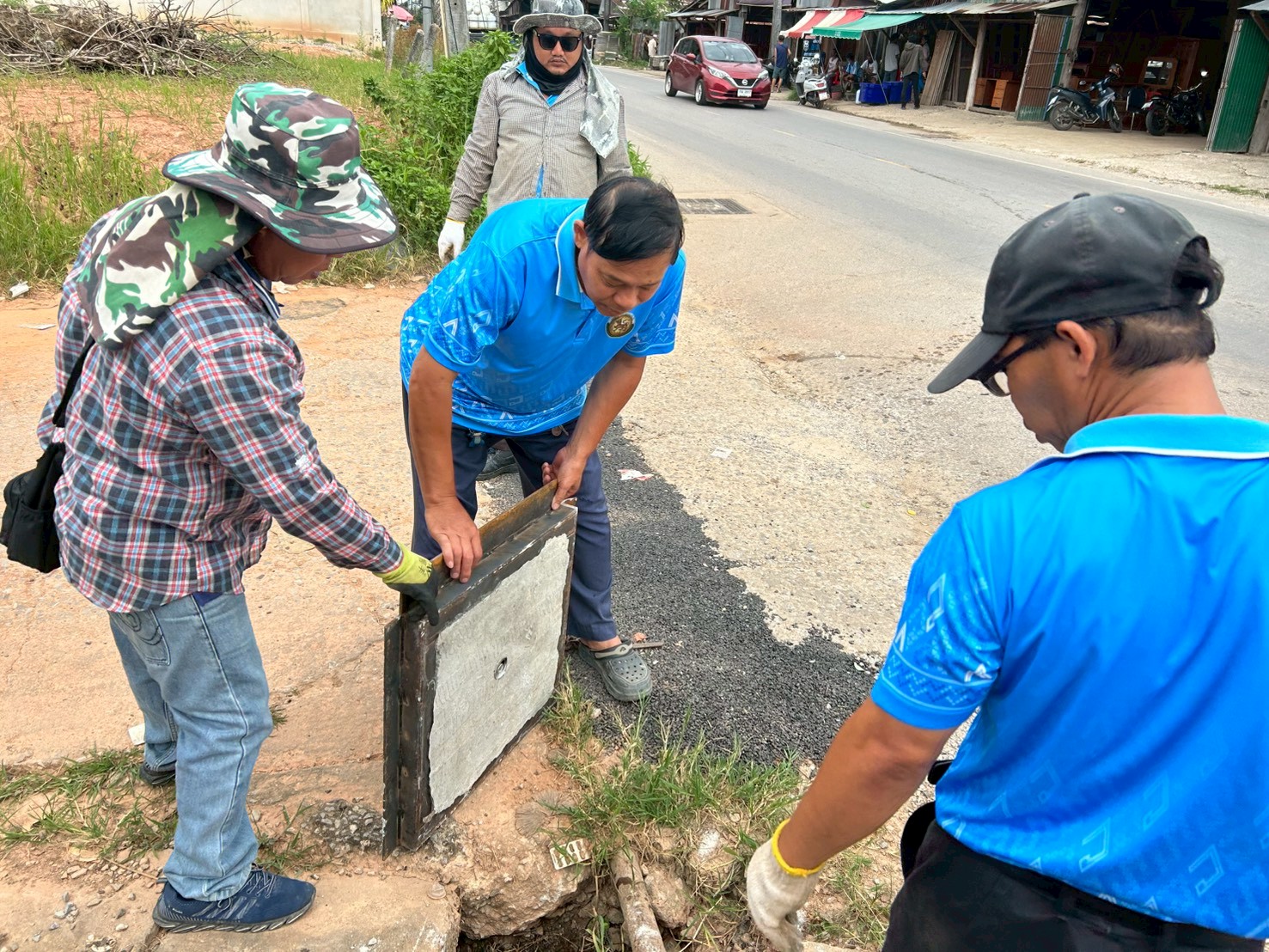 2. ได้เข้าดำเนินการเปลี่ยนฝาท่อระบายน้ำ บริเวณซอยบ้าน สท.ดุล จำนวน 2 ฝา