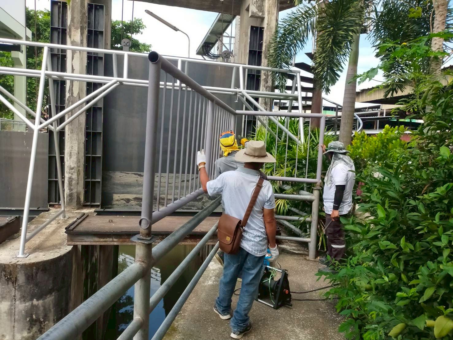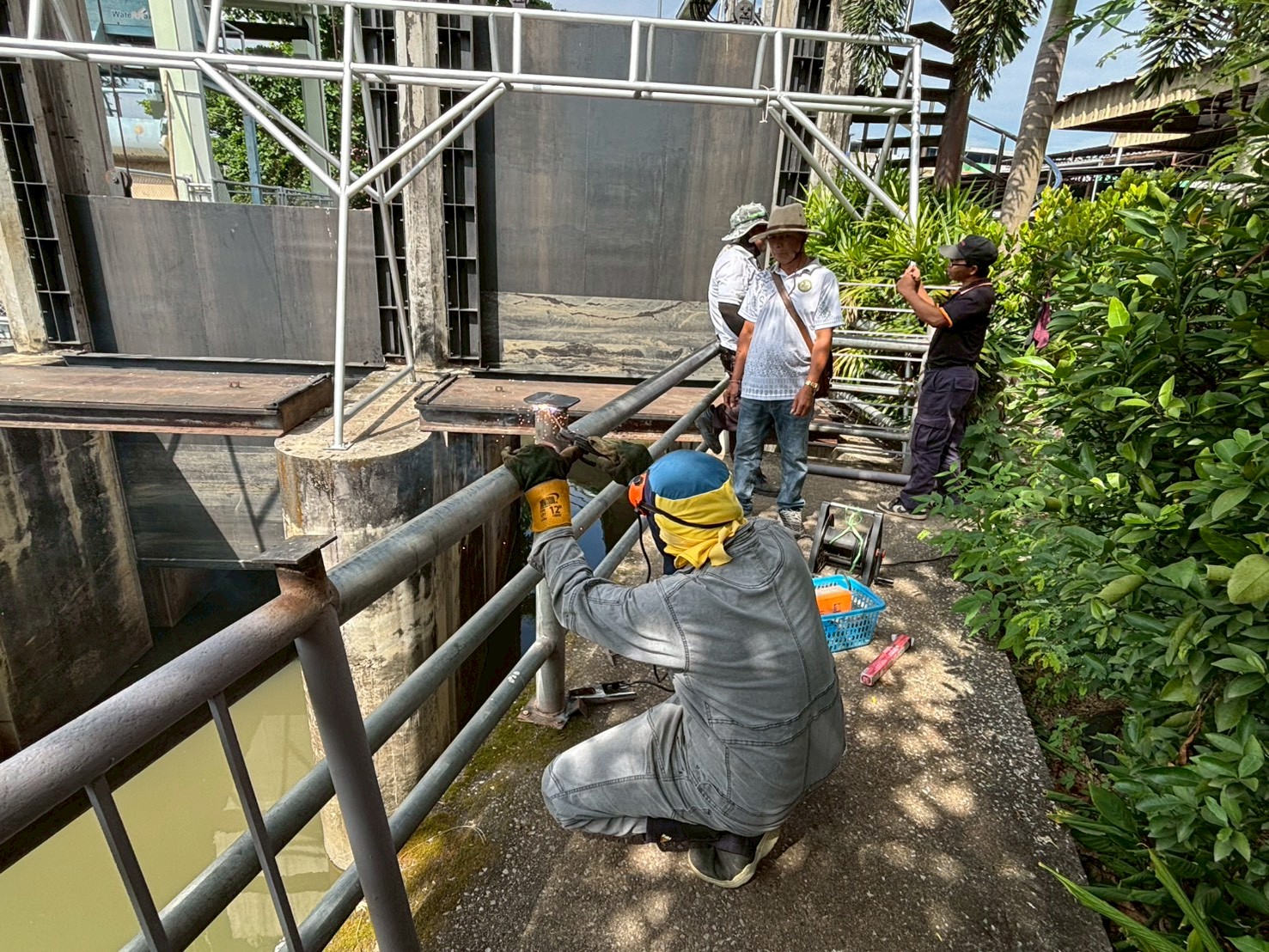 1. ได้เข้าดำเนินการติดตั้งแผงกั้นป้องกันบุคคลภายนอกเข้าบริเวณสถานีสูบน้ำท่ารถแม่ระมาด