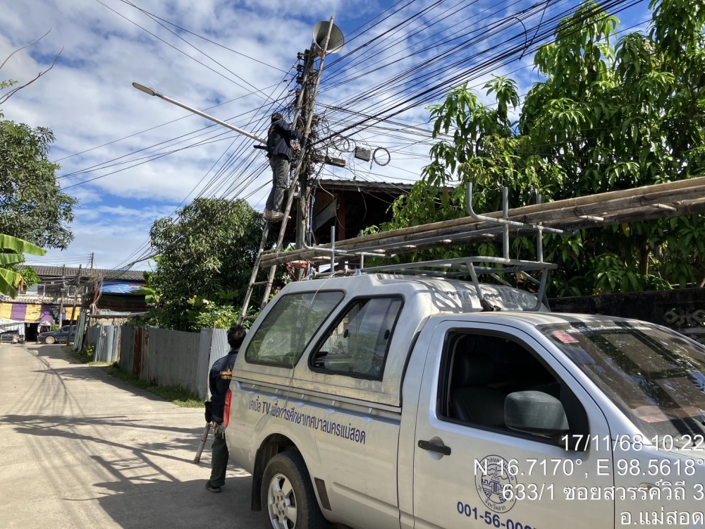 ว่าที่พันตรี ดร.ไพฑูรย์ ปริญญาธรรมกุล ผู้อำนวยการกองยุทธศาสตร์และงบประมาณ มอบหมายให้เจ้าหน้าที่ช่างเคเบิ้ลทีวีเพื่อการศึกษา เจ้าหน้าที่ฝ่ายวิเทศสัมพันธ์ กองยุทธศาสตร์และงบประมาณ ลงพื้นที่ดำเนินการตามคำร้องขอซ่อมแซมเคเบิ้ลทีวีในเขตชุมชนร่วมใจ เพื่อให้ประชาชนในชุมชนดังกล่าว สามารถกลับมารับชมบริการเคเบิ้ลทีวีเพื่อการศึกษาของเทศบาลนครแม่สอดได้ตามปกติ