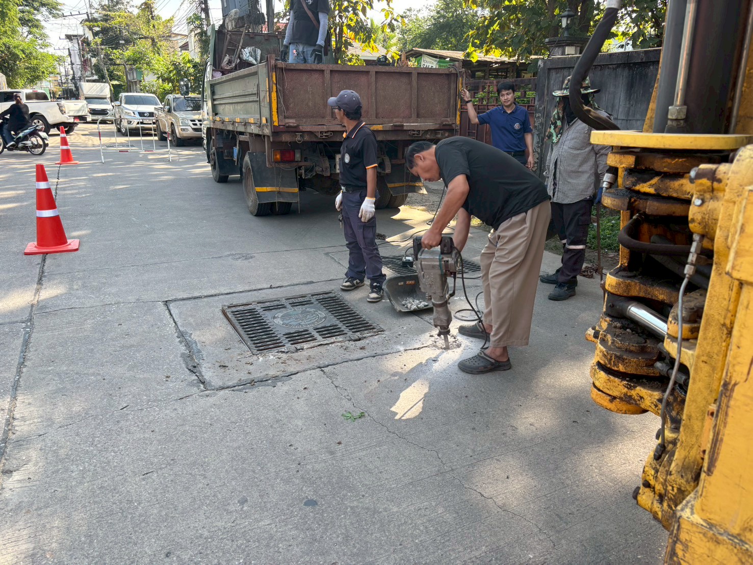 1. ได้เข้าดำเนินการเจาะ / เปลี่ยนฝาท่อระบายน้ำ (เสียงดัง) บริเวณหน้าร้านขายไข่ ชุมชนประชารักษ์