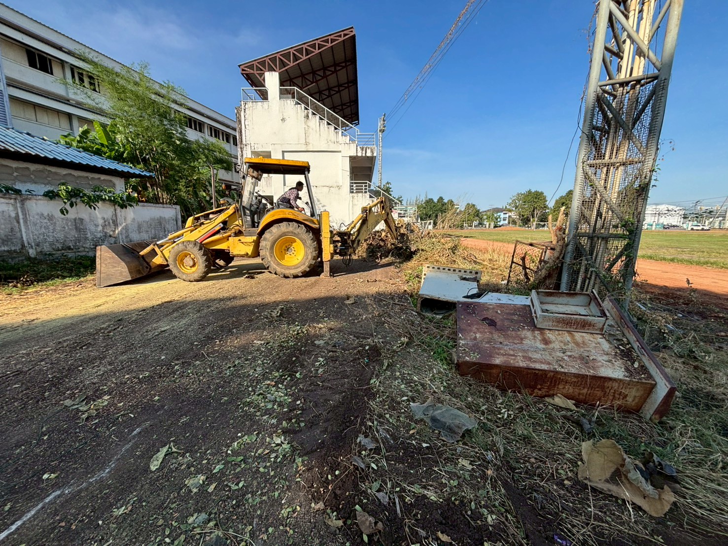 2. ได้เข้าดำเนินการปรับดิน / ขนเศษหญ้าแห้ง บริเวณสนามกีฬาสมเด็จพระนเรศวรมหาราช
