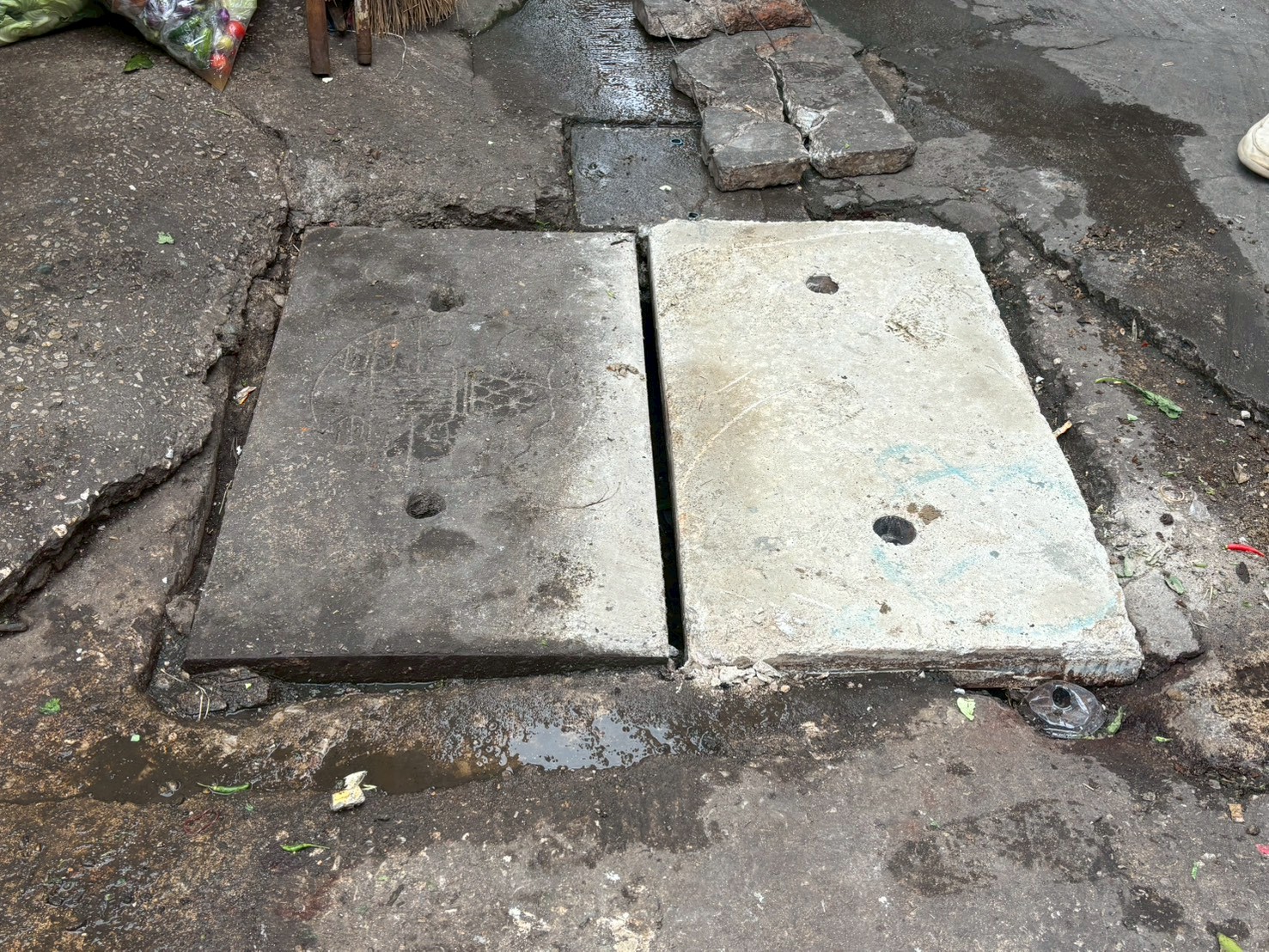 3. ได้เข้าดำเนินการเปลี่ยนฝาท่อระบายน้ำ บริเวณสี่แยกร้านสังฆภัณฑ์ ตลาดพาเจริญ จำนวน 1 ฝา