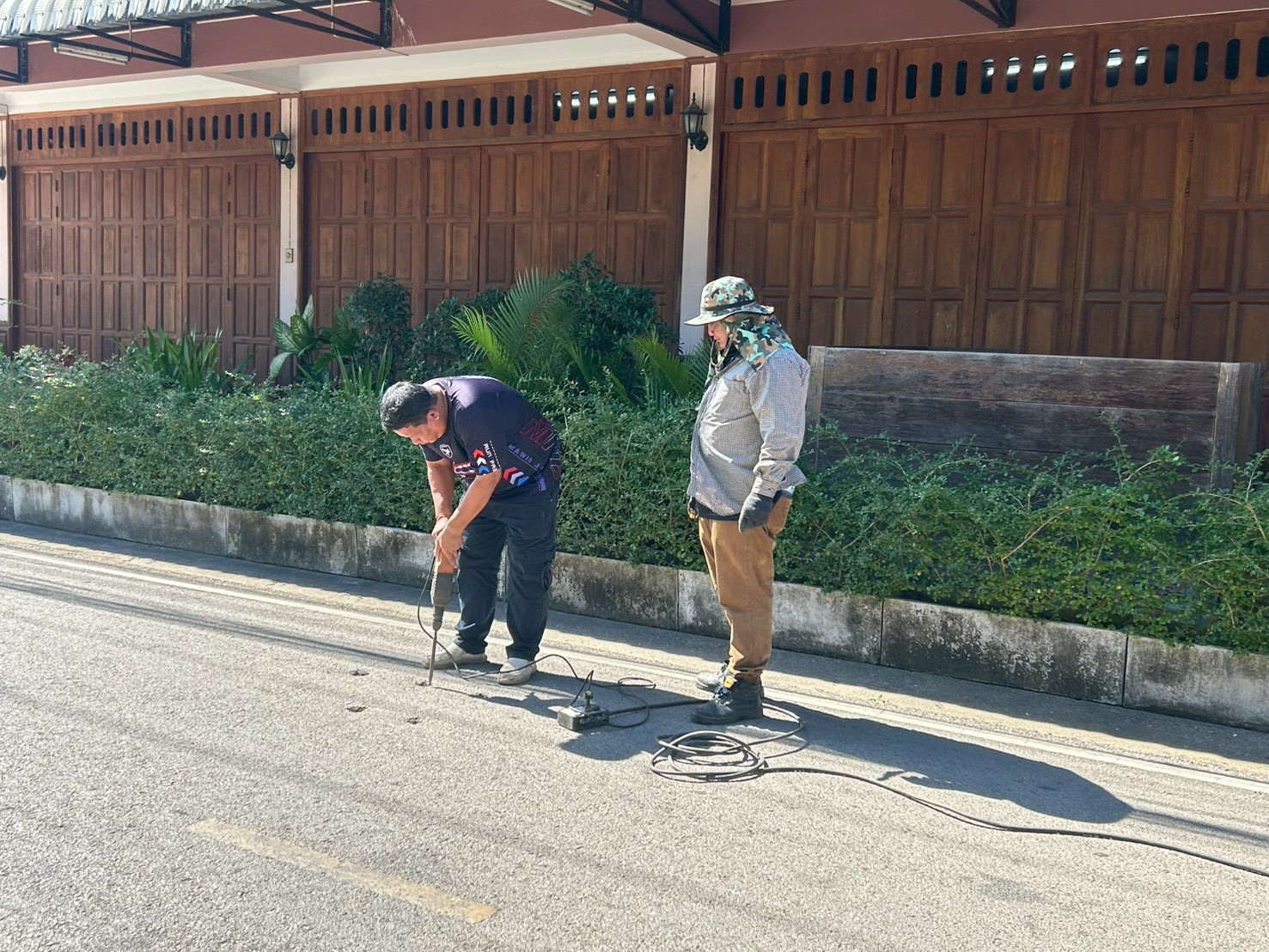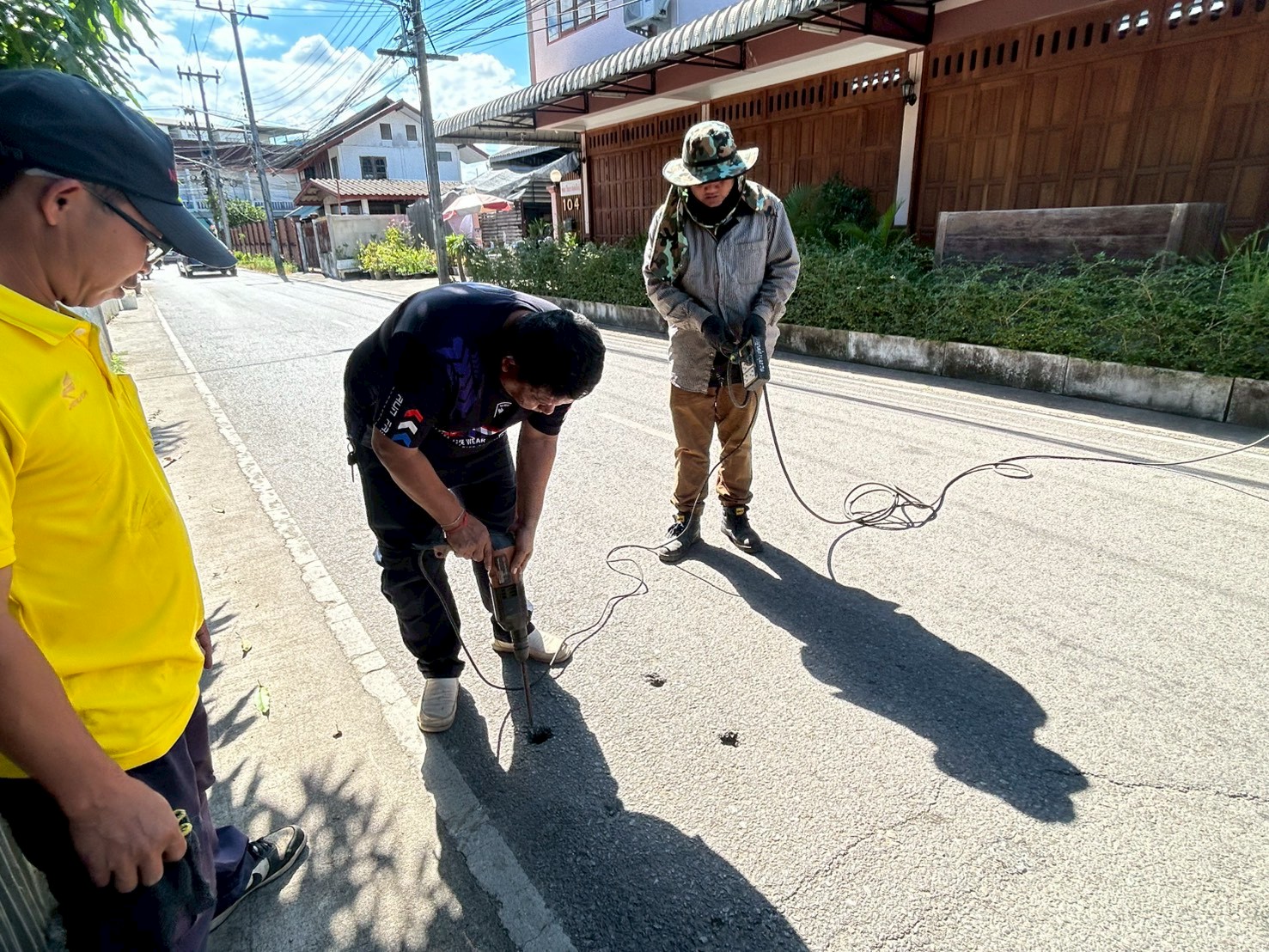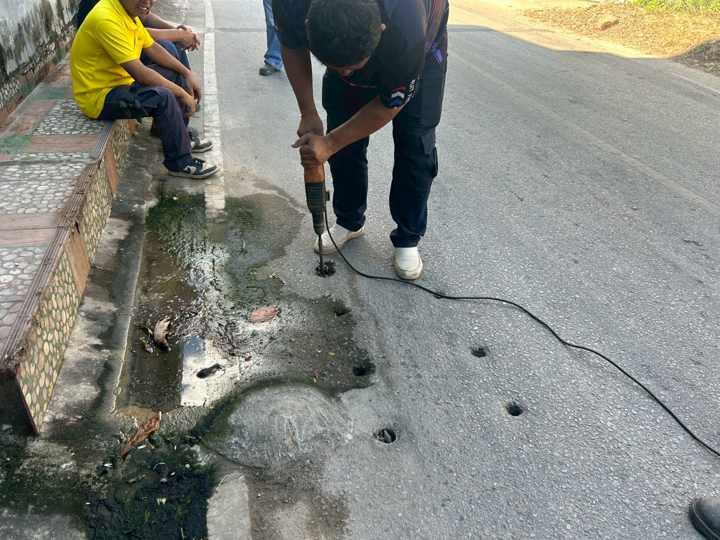 3. ได้เข้าดำเนินการเจาะรูระบายน้ำ บริเวณบ่อพักถนนชิดวนา - ปู่แดง