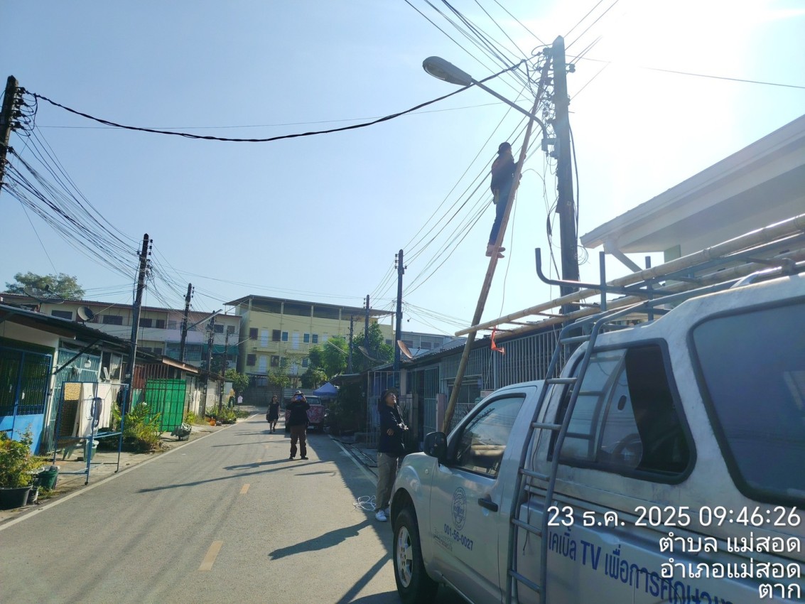 เจ้าหน้าที่กองยุทธศาสตร์และงบประมาณ ดำเนินการตามคำร้องขอซ่อมแซมเคเบิ้ลทีวี ชุมชนบ้านเหนือสามัคคี