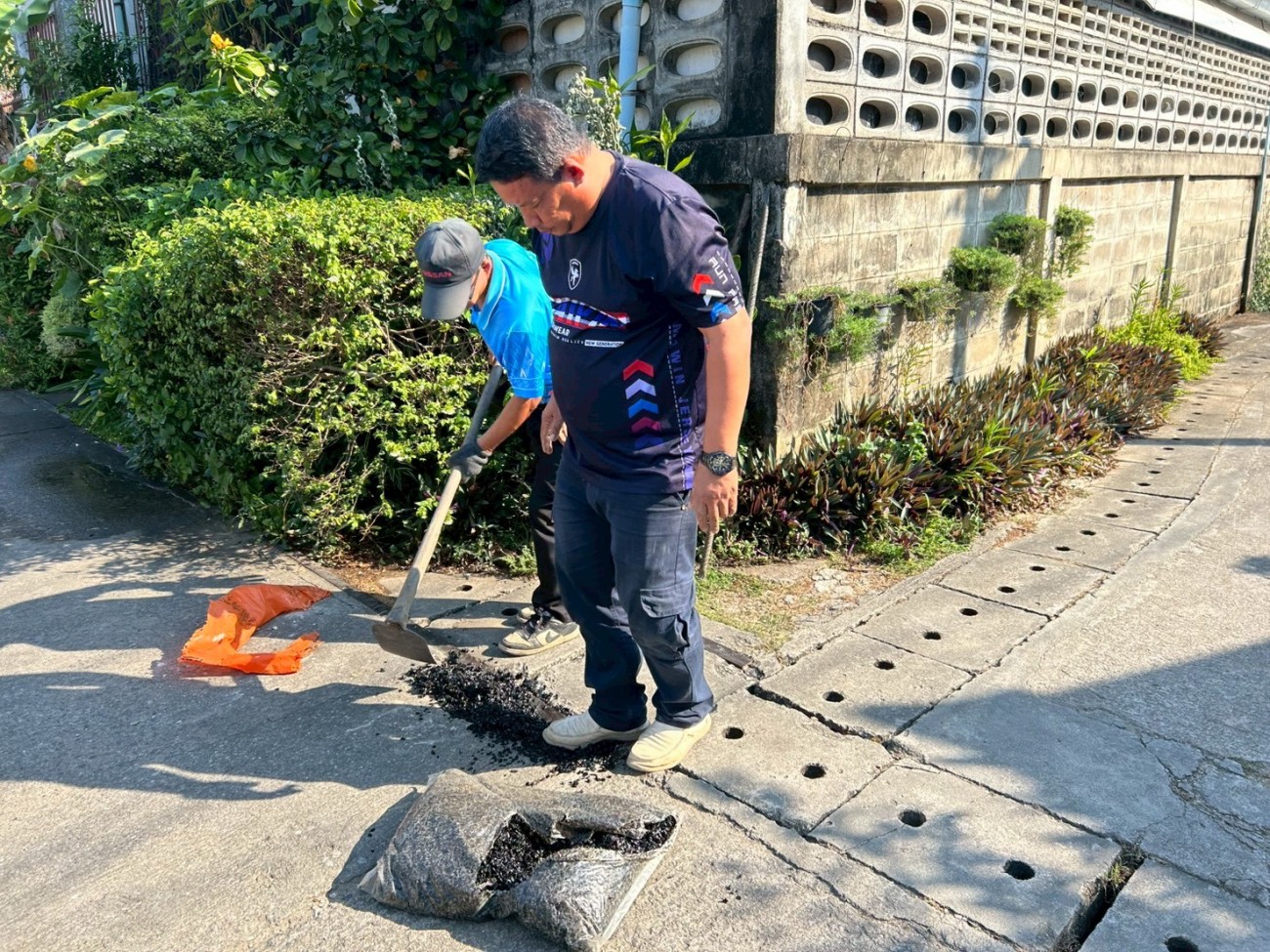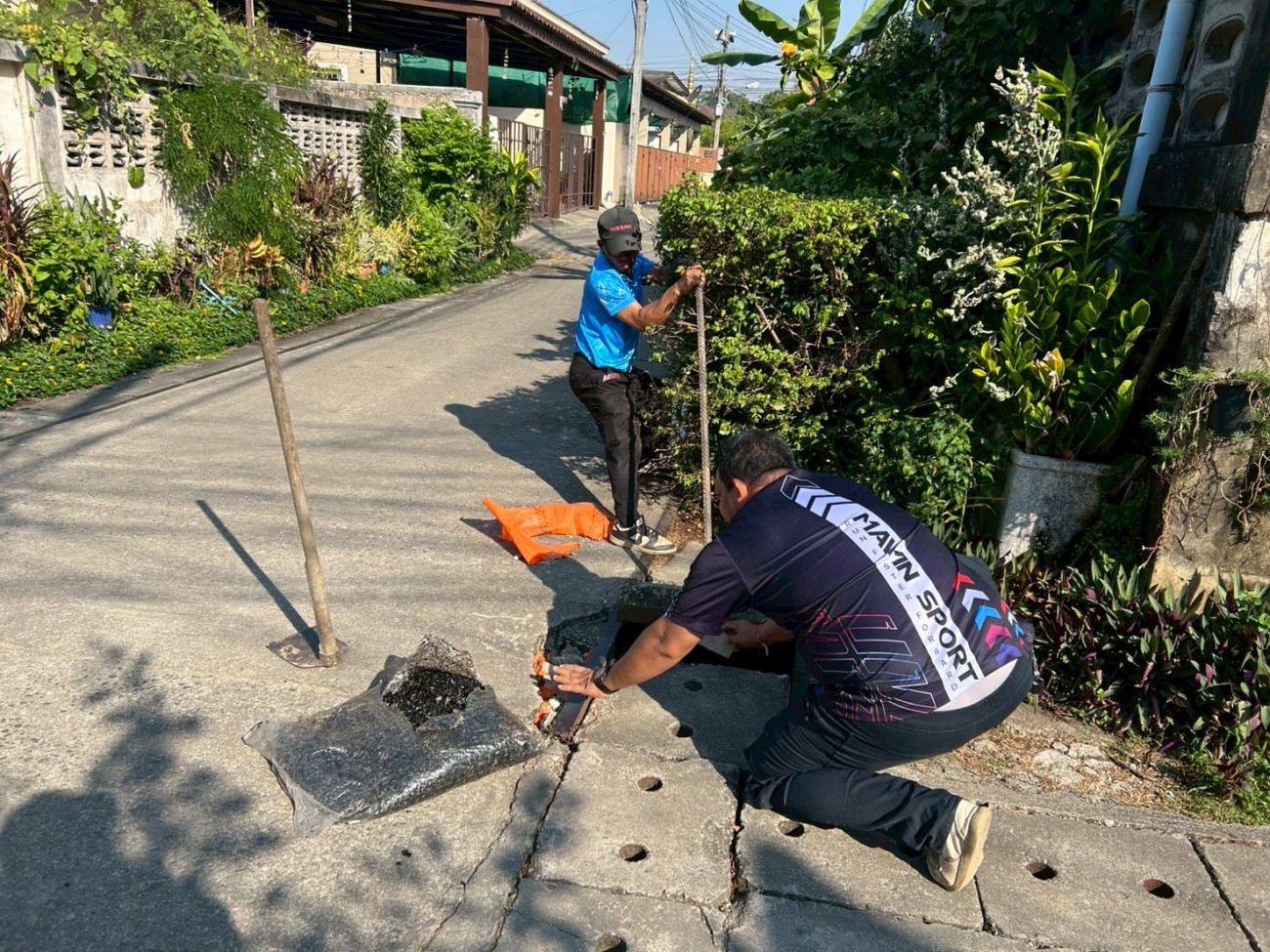 3. ได้เข้าดำเนินการลงยางมะตอยขอบรางระบายน้ำ บริเวณหลังวัดดอนไชย