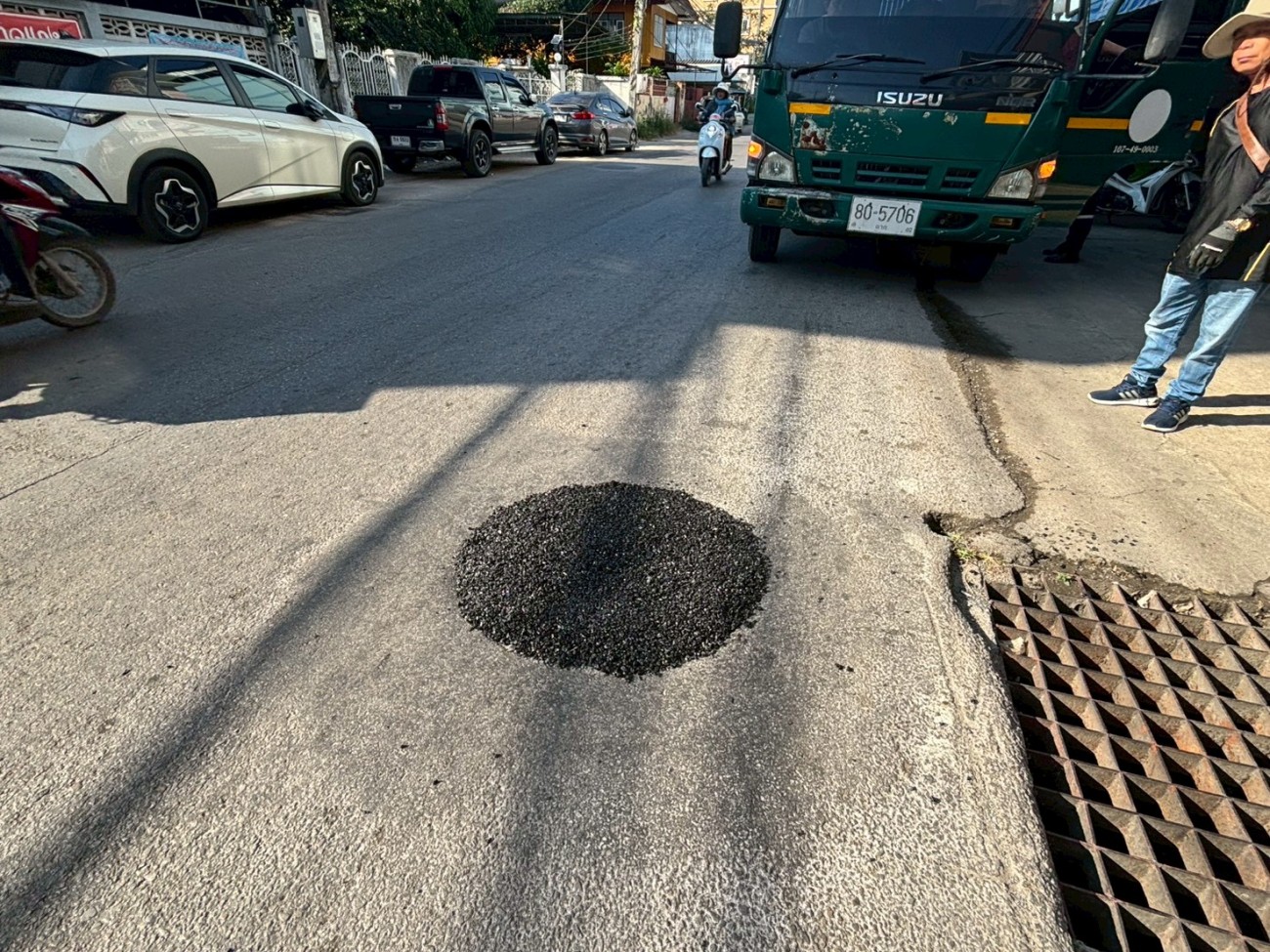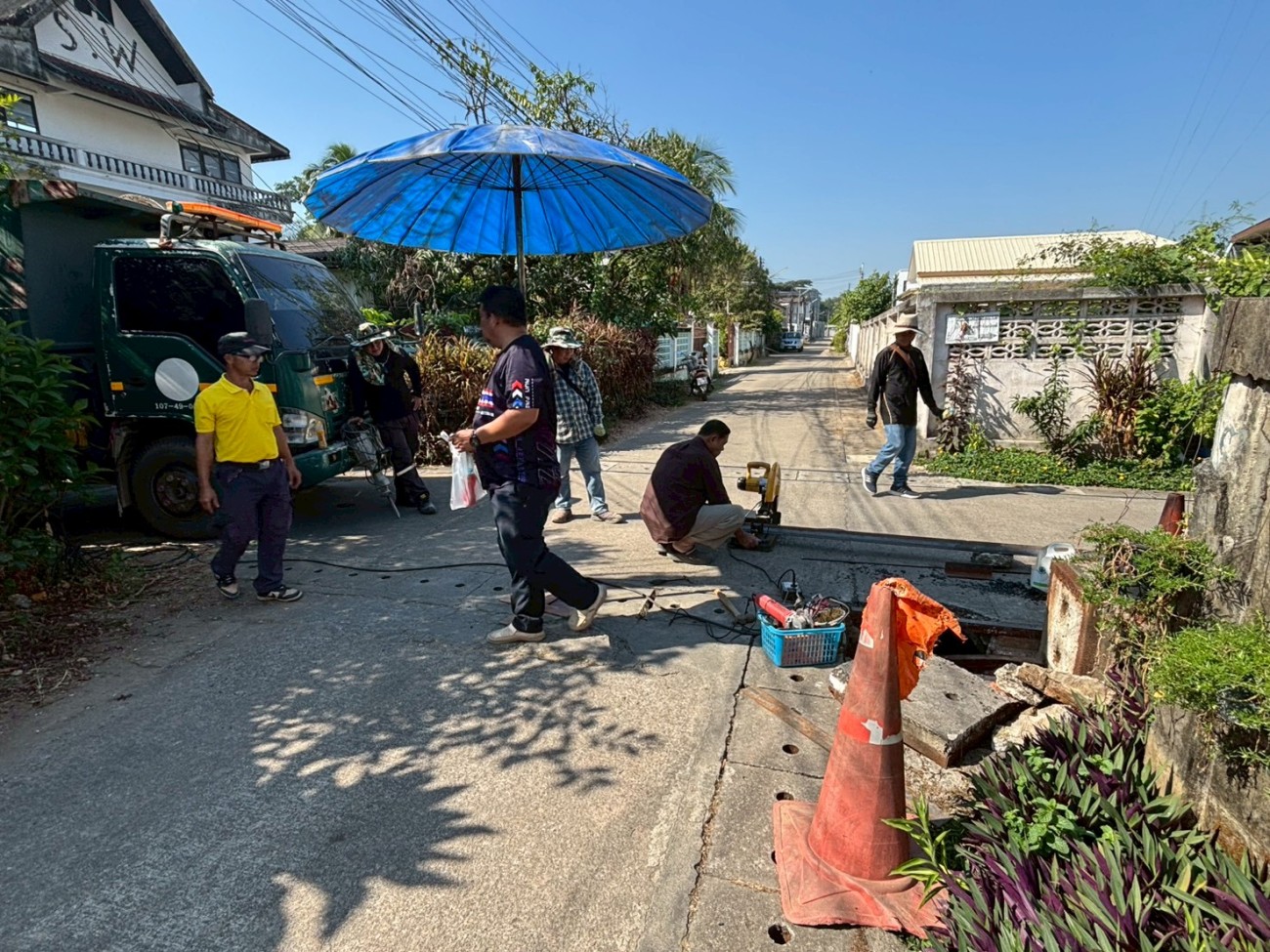 1. ได้เข้าดำเนินการลงยางมะตอยฝาท่อระบายน้ำ บริเวณหน้าร้านแม่ลำไย ชุมชนประชารักษ์