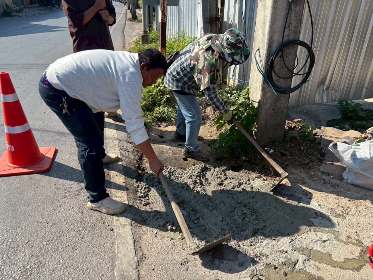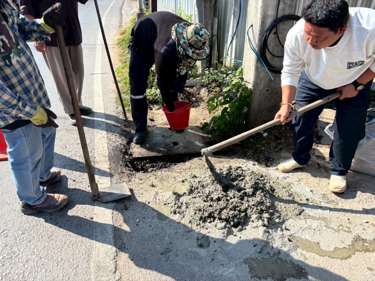 3. ได้เข้าดำเนินการซ่อมแซมขอบบ่อพัก บริเวณใกล้กับร้านโรตี 100 ชั้น