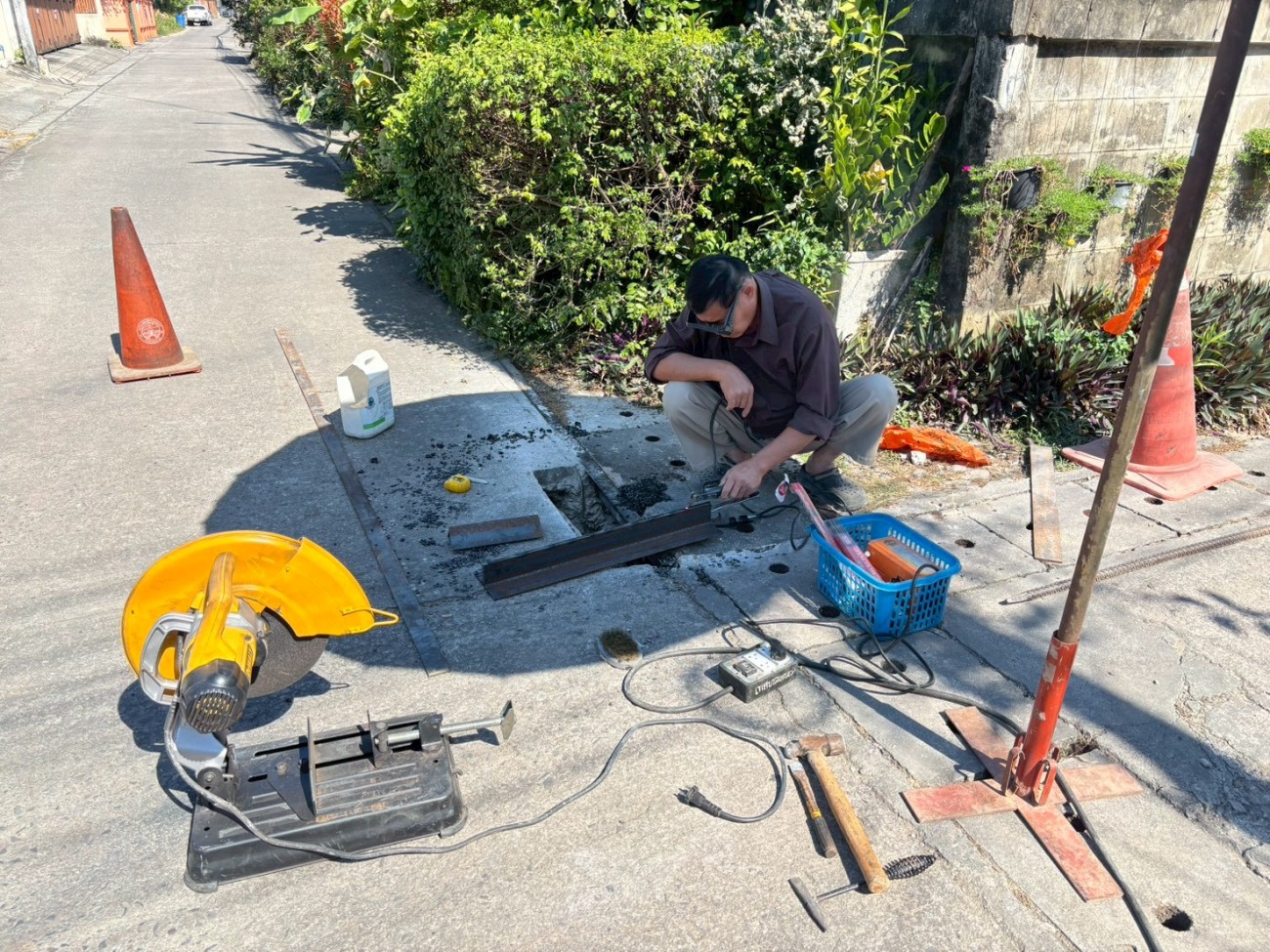 2. ได้เข้าดำเนินการเปลี่ยนฝาท่อระบายน้ำ บริเวณหน้าร้านจงมั่นคง จำนวน 1 ฝา