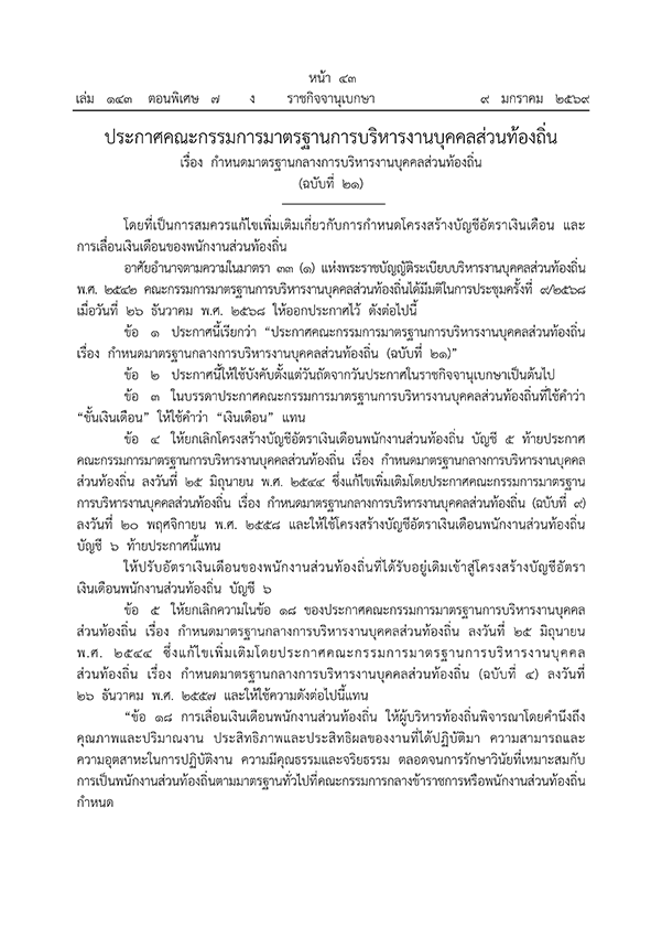 ประกาศคณะกรรมการมาตรฐานการบริหารงานบุคคลส่วนท้องถิ่น เรื่อง กำหนดมาตรฐานกลางการบริหารงานบุคคลส่วนท้องถิ่น (ฉบับที่ 21).