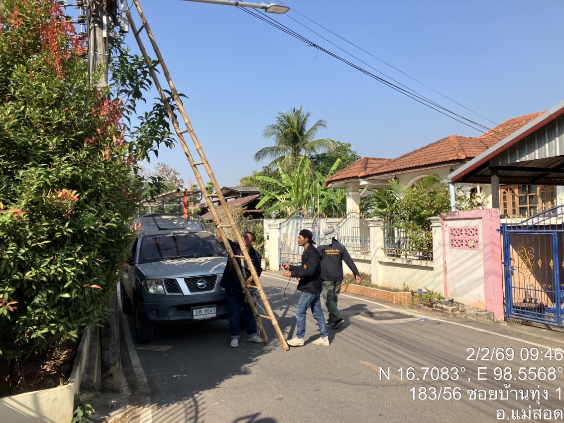 เจ้าหน้าที่กองยุทธศาสตร์และงบประมาณ ดำเนินการตามคำร้องขอซ่อมแซมเคเบิ้ลทีวี ชุมชนสันต้นปิน