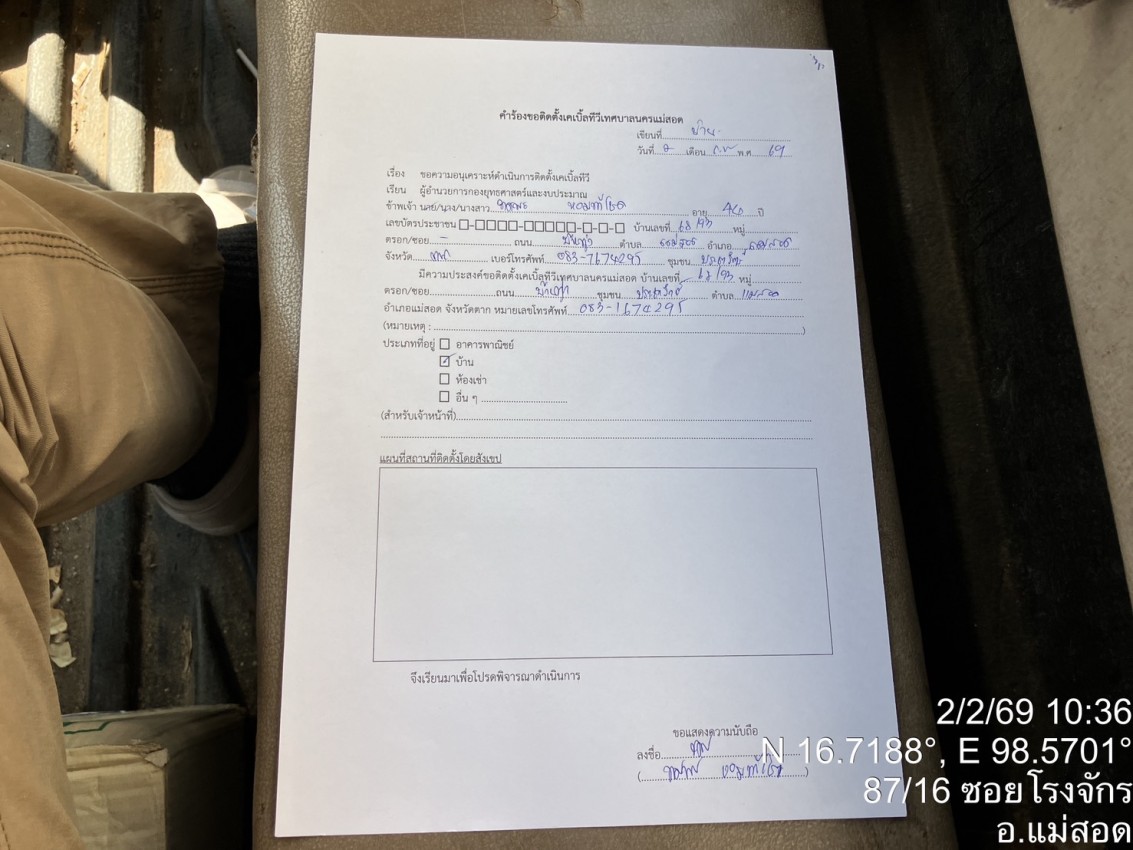 เจ้าหน้าที่กองยุทธศาสตร์และงบประมาณ ดำเนินการตามคำร้องขอติดตั้งเคเบิ้ลทีวี ชุมชนประชารักษ์