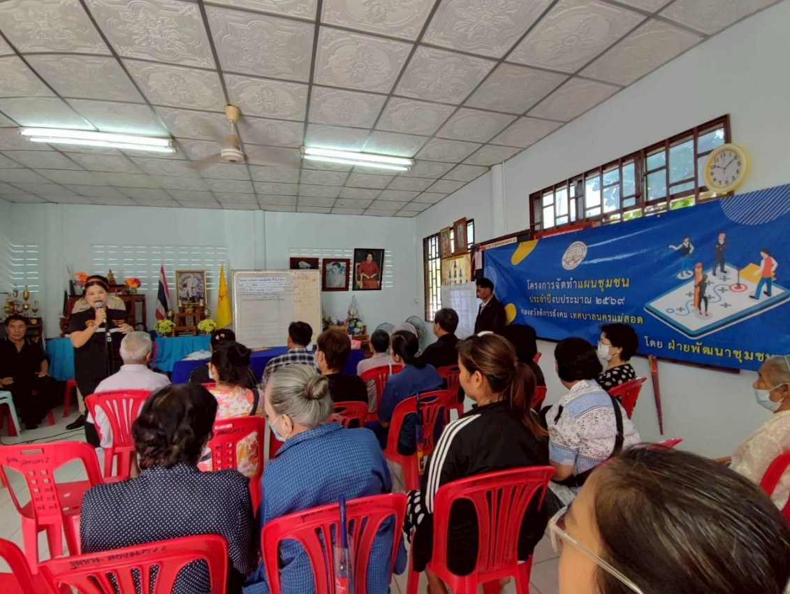 วันจันทร์ ที่ 17 พฤศจิกายน พ.ศ.2568 นายสุมิตร กัญจะนะ ผู้อำนวยการกองสวัสดิการสังคม พร้อมกับเจ้าหน้าที่ฝ่ายพัฒนาชุมชน กองสวัสดิการสังคม ร่วมกับกองยุทธศาสตร์และงบประมาณ เทศบาลนครแม่สอด จัดทำโครงการจัดทำแผนชุมชน ปีงบประมาณ 2569 ของชุมชนสองแคว 2 ณ ที่ทำการชุมชน เพื่อรับฟังปัญหาความต้องการของประชาชน และนำบรรจุเข้าแผนชุมชนต่อไป
