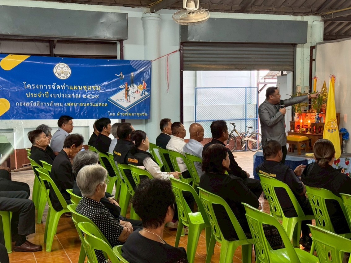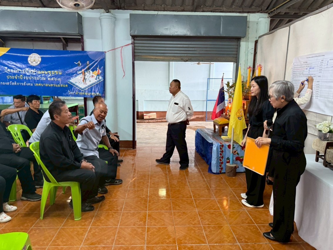 วันพุธ ที่ 19 พฤศจิกายน พ.ศ.2568 นายสุมิตร กัญจะนะ ผู้อำนวยการกองสวัสดิการสังคม พร้อมกับเจ้าหน้าที่ฝ่ายพัฒนาชุมชน กองสวัสดิการสังคม ร่วมกับกองยุทธศาสตร์และงบประมาณ เทศบาลนครแม่สอด จัดทำโครงการจัดทำแผนชุมชน ปีงบประมาณ 2569 ของชุมชนอินทรคีรี 1 ณ ที่ทำการชุมชน เพื่อรับฟังปัญหาความต้องการของประชาชน และนำบรรจุเข้าแผนชุมชนต่อไป