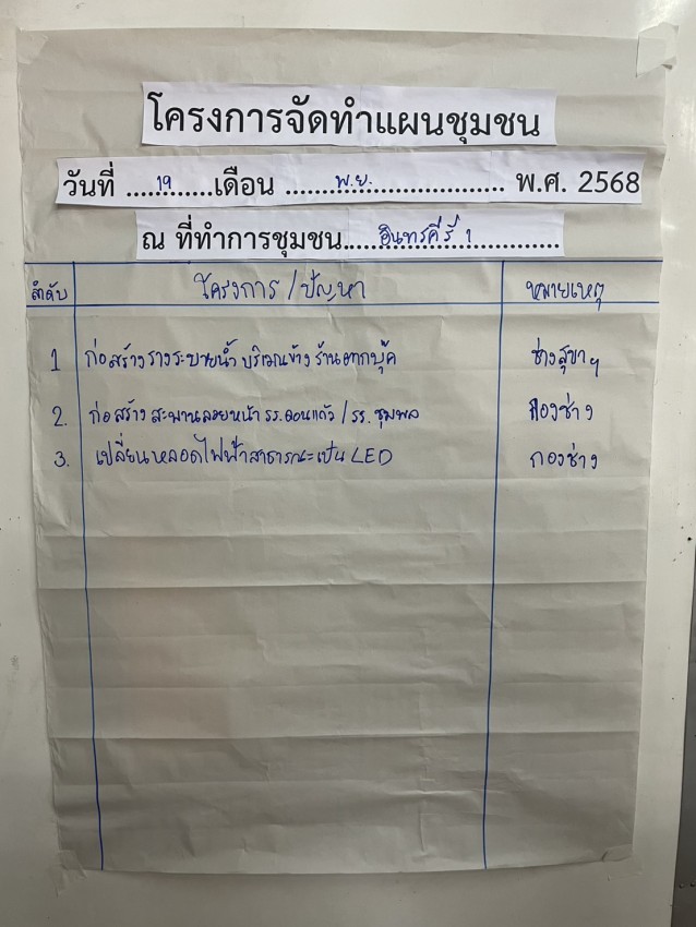 โครงการจัดทำแผนชุมชน ปีงบประมาณ 2569 ของชุมชนอินทรคีรี 1