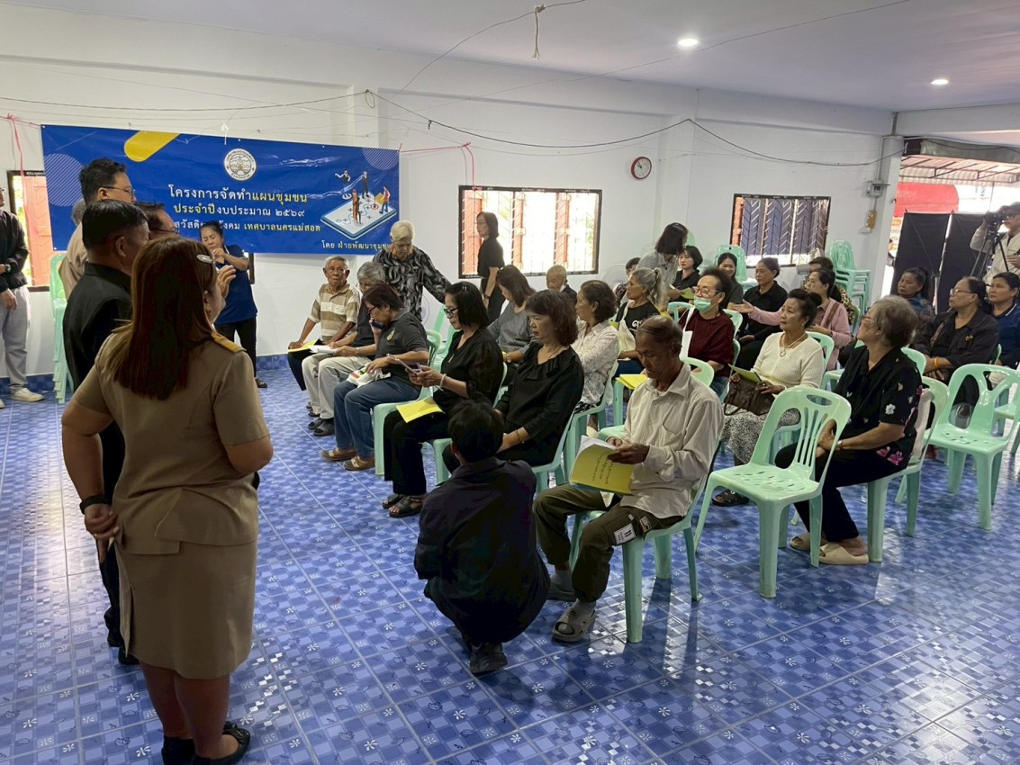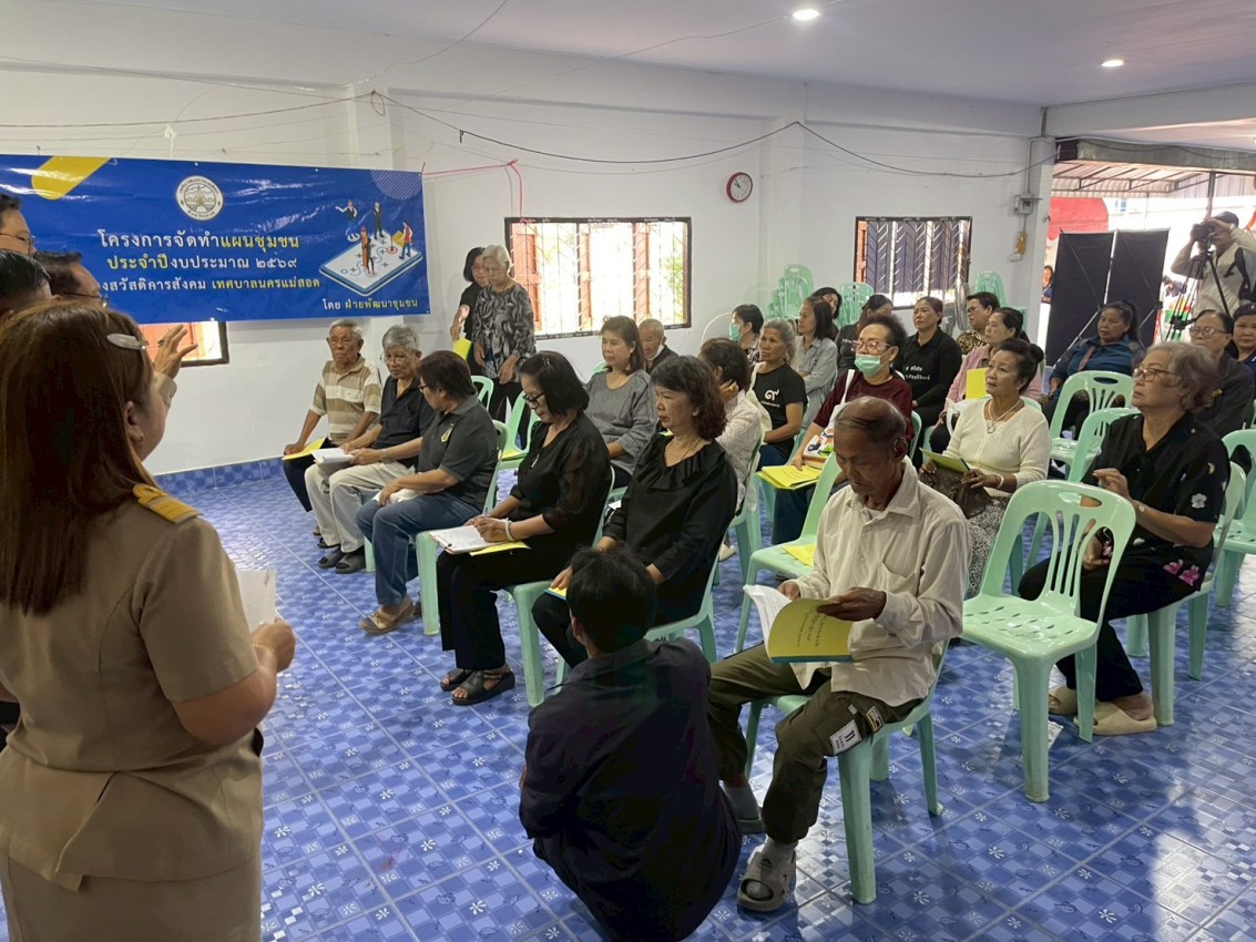 วันที่ 15 ธันวาคม พ.ศ.2568 นายสุมิตร กัญจะนะ ผู้อำนวยการกองสวัสดิการสังคม พร้อมกับเจ้าหน้าที่ฝ่ายพัฒนาชุมชน กองสวัสดิการสังคม ร่วมกับกองยุทธศาสตร์และงบประมาณ เทศบาลนครแม่สอด จัดทำโครงการจัดทำแผนชุมชน ปีงบประมาณ 2569 ของชุมชนมณีไพรสณฑ์ ณ ที่ทำการชุมชนมณีไพรสณฑ์ เพื่อรับฟังปัญหาความต้องการของประชาชน และนำบรรจุเข้าแผนชุมชนต่อไป