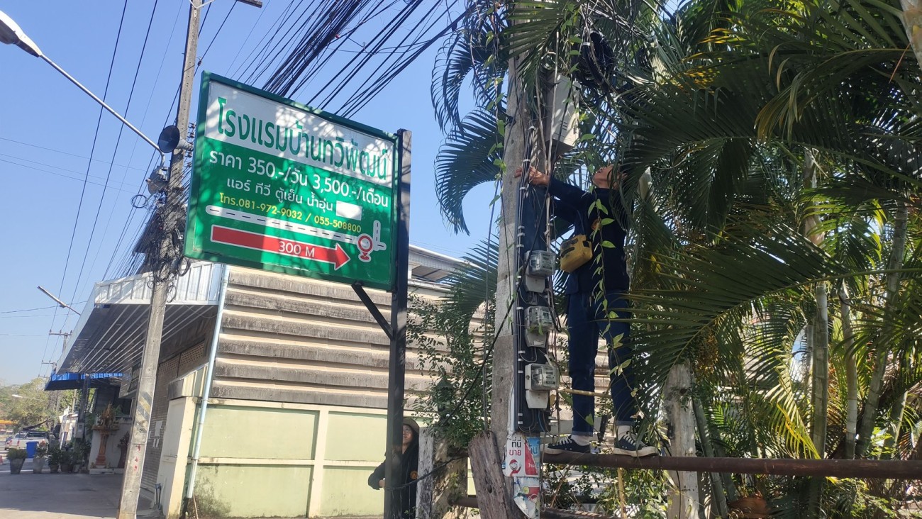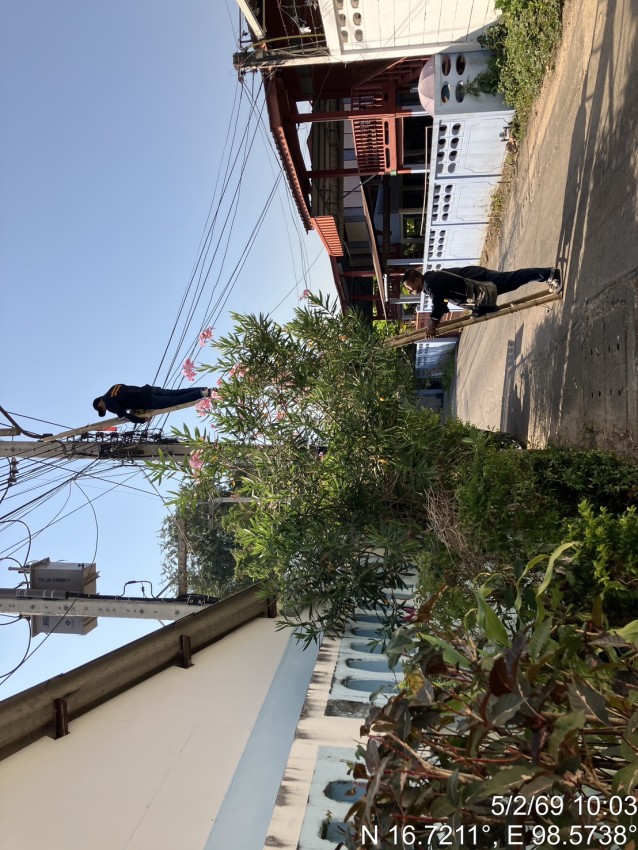 เจ้าหน้าที่กองยุทธศาสตร์และงบประมาณ ดำเนินการตามคำร้องขอซ่อมแซมเคเบิ้ลทีวี ชุมชนอินทรคีรี 1 จากเหตุเพลิงไหม้เสาไฟฟ้าซอยวัดดอนแก้ว