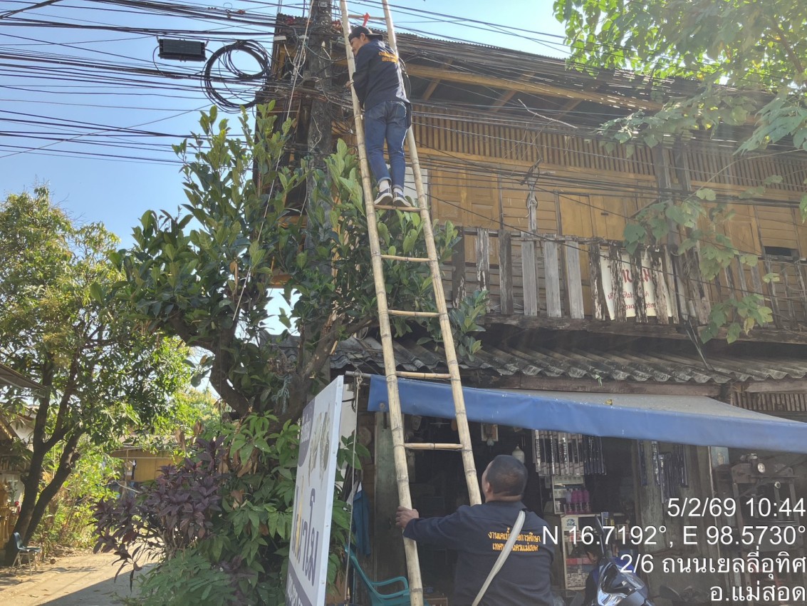 เจ้าหน้าที่กองยุทธศาสตร์และงบประมาณ ดำเนินการตามคำร้องขอซ่อมแซมเคเบิ้ลทีวี ชุมชนบ้านเหนือสามัคคี