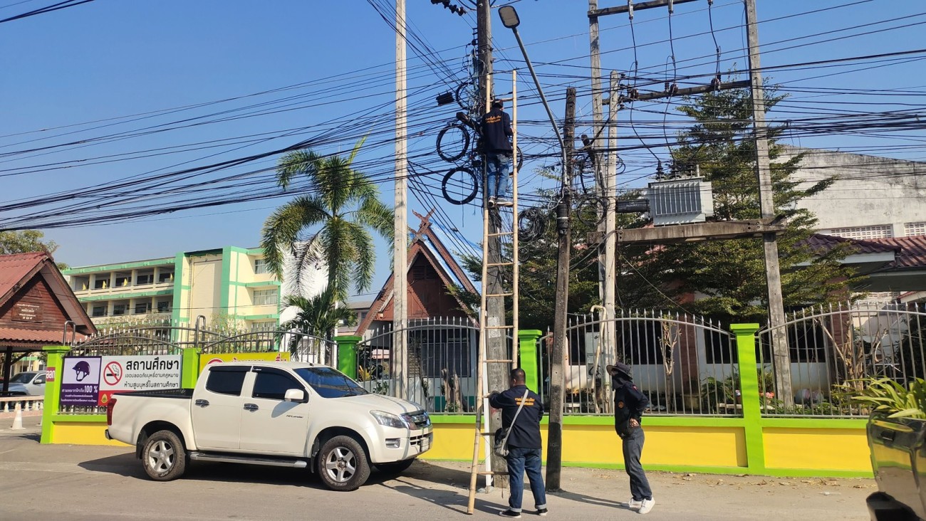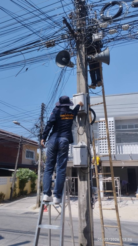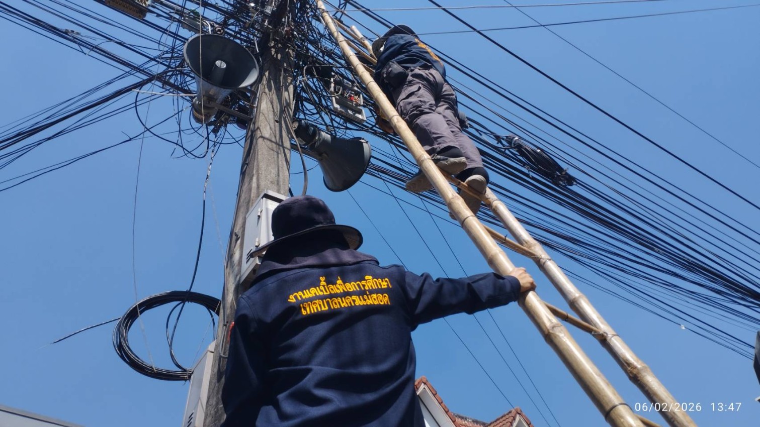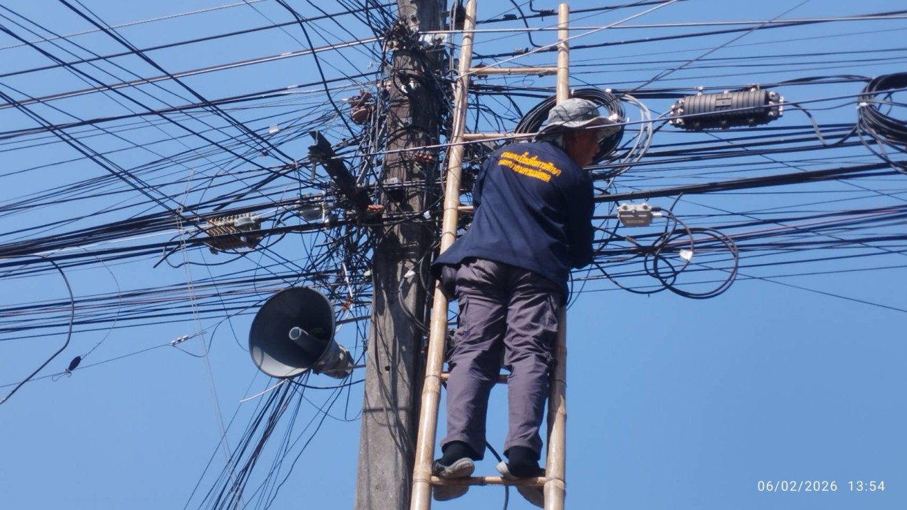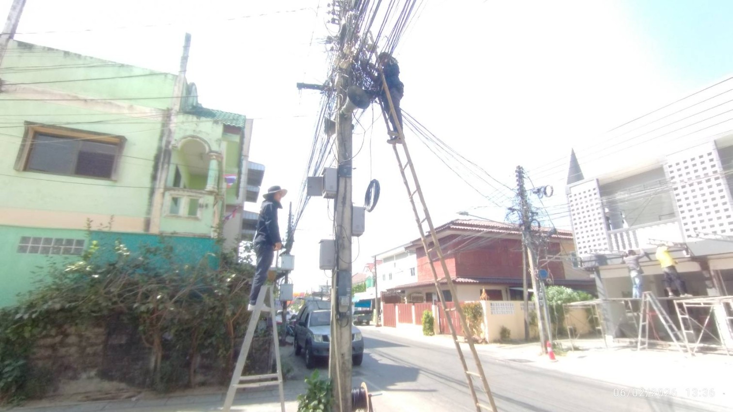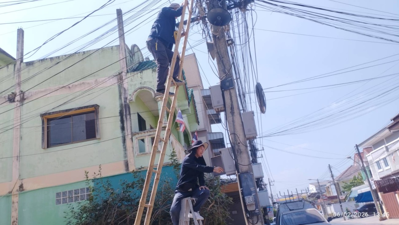 เจ้าหน้าที่กองยุทธศาสตร์และงบประมาณ ดำเนินการตามคำร้องขอซ่อมแซมเคเบิ้ลทีวี ชุมชนอินทรคีรี 1 จากเหตุเพลิงไหม้เสาไฟฟ้าซอยวัดดอนแก้ว