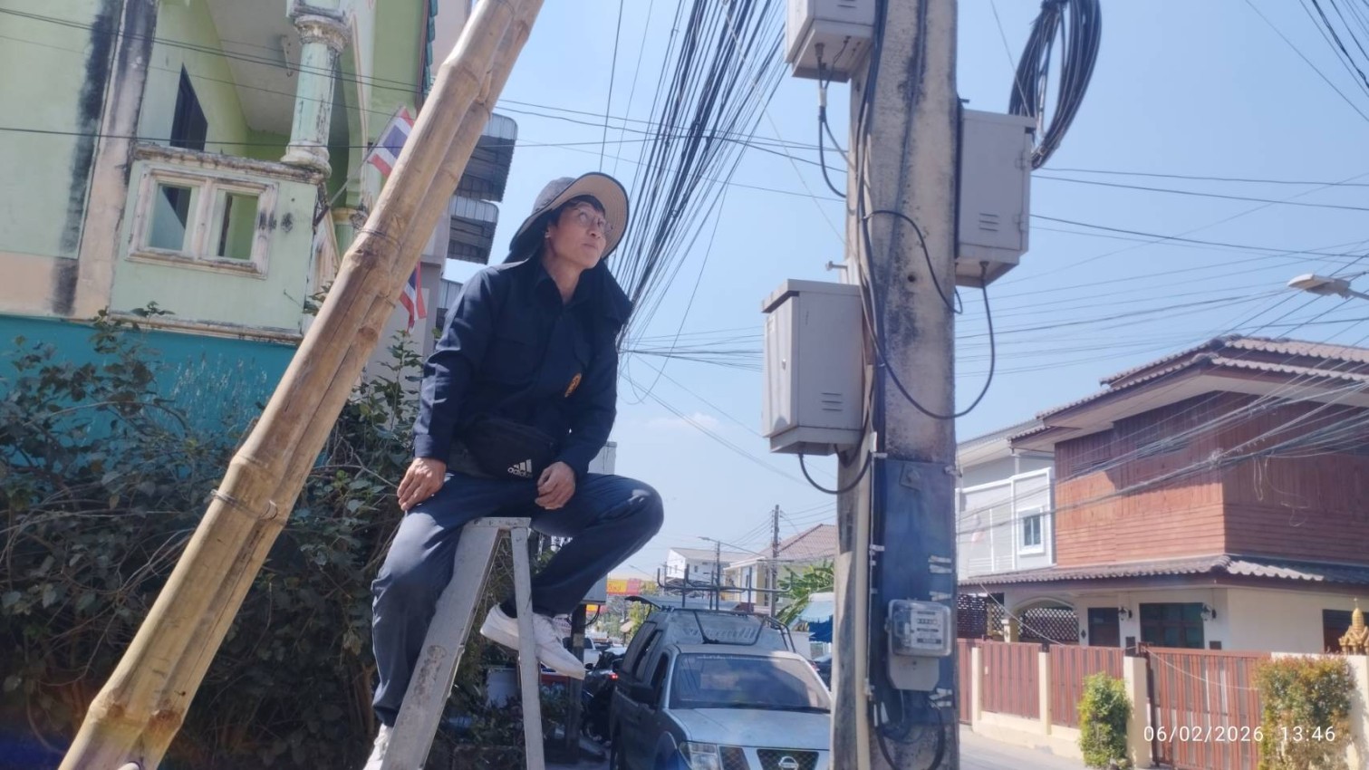 เจ้าหน้าที่กองยุทธศาสตร์และงบประมาณ ดำเนินการตามคำร้องขอซ่อมแซมเคเบิ้ลทีวี ชุมชนบัวคูณ