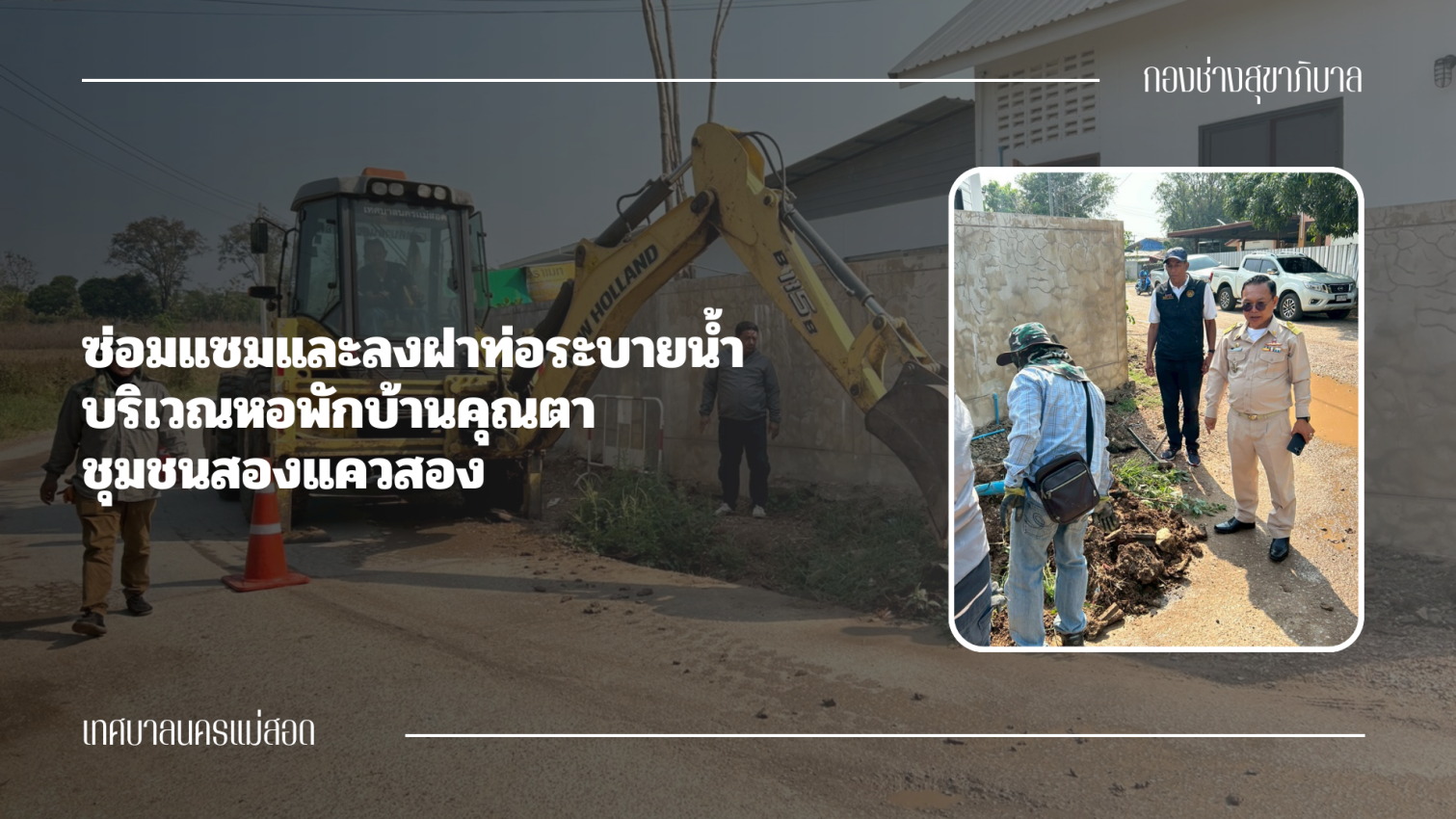 1. ได้ดำเนินการซ่อมแซมและลงฝาท่อระบายน้ำ บริเวณหอพักบ้านคุณตา ชุมชนสองแควสอง