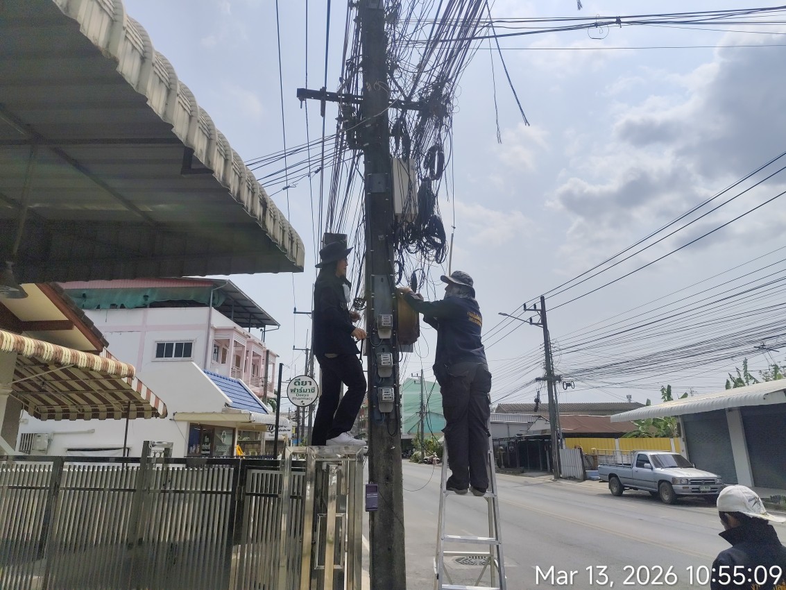 เจ้าหน้าที่กองยุทธศาสตร์และงบประมาณ ดำเนินการตามคำร้องขอซ่อมแซมเคเบิ้ลทีวี ชุมชนมณีไพรสนฑ์