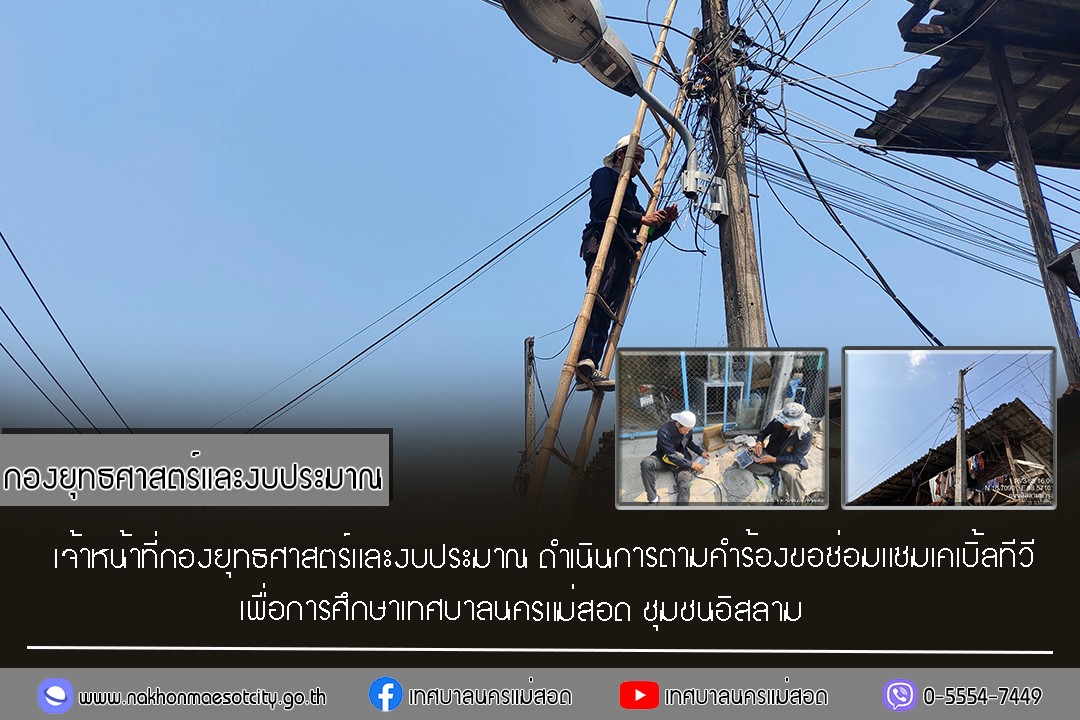 เจ้าหน้าที่กองยุทธศาสตร์และงบประมาณ ดำเนินการตามคำร้องขอซ่อมแซมเคเบิ้ลทีวี ชุมชนอิสลาม